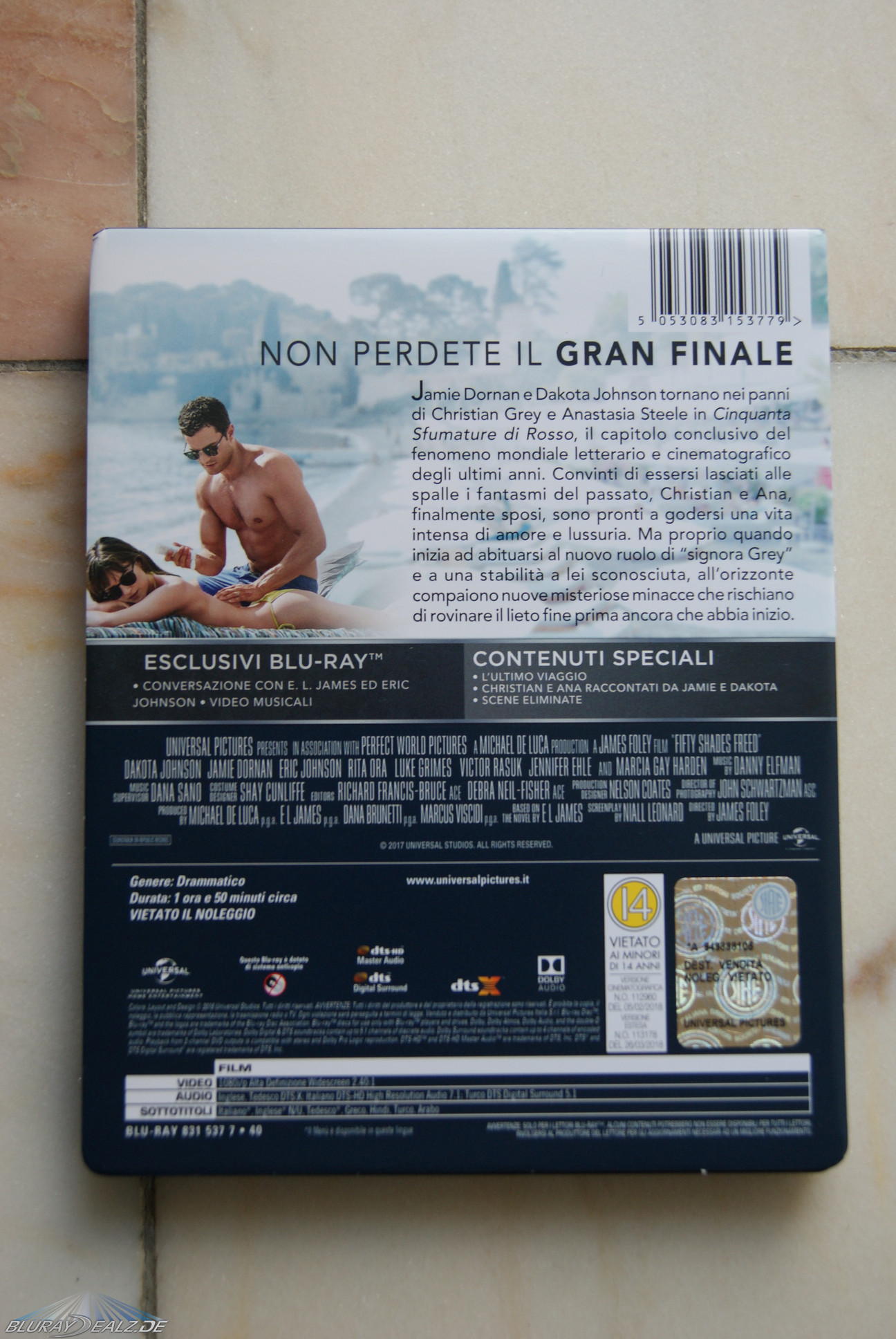Ein Blick auf das deutsche Steelbook fehlt allerdings noch. Hier ist vorne Ana als Braut zu sehen und hinten ein Blick über Paris.