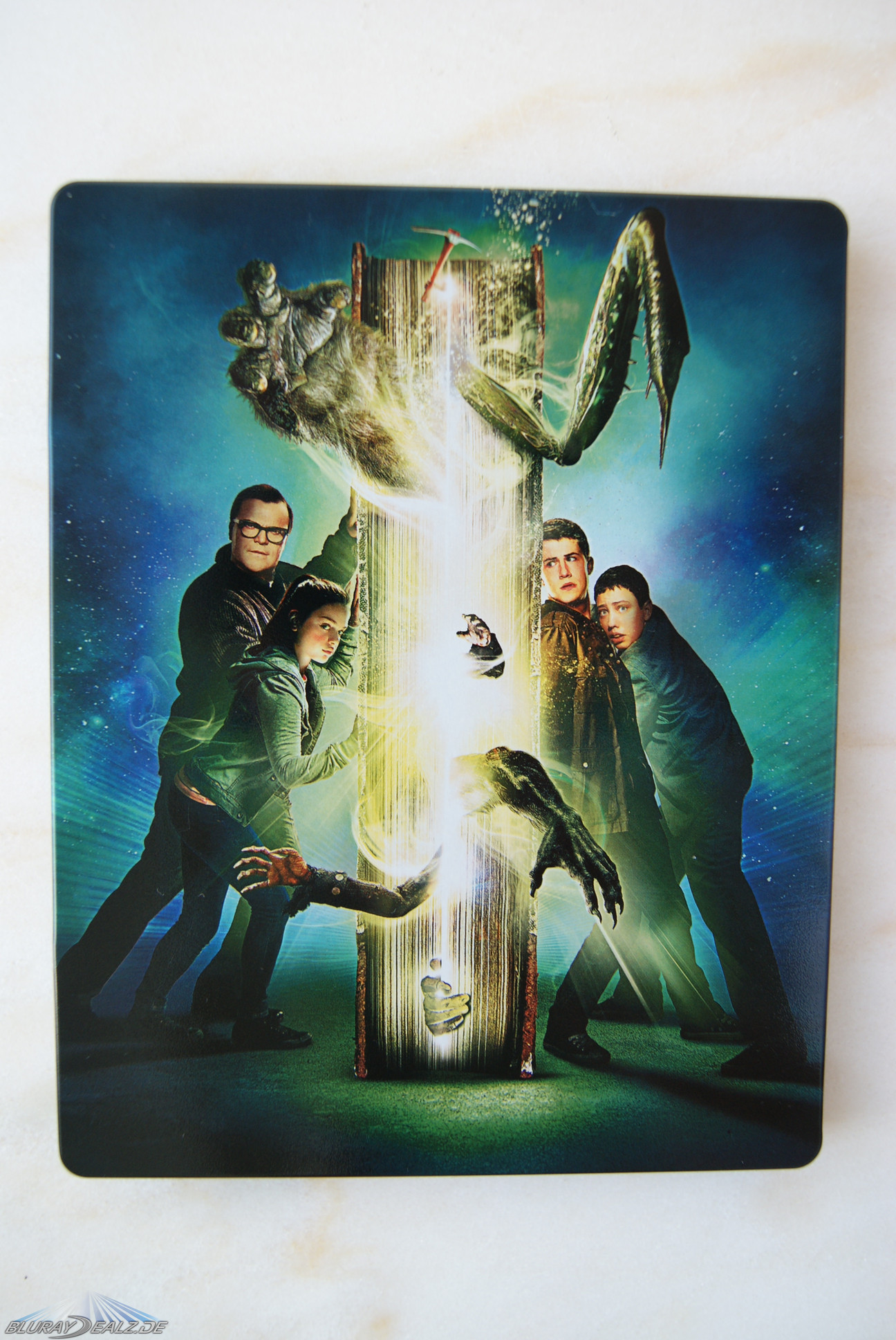 Das Steelbook hat eine wunderschöne, glänzende Oberfläche. Der Hintergrund ist in dunkelblau gehalten, davor zeigt sich ein sehr kräftiger und farbenreicher Druck, der seinesgleichen sucht. Die Front hat eine Rahmenprägung und zeigt eine Abwandlung des bekannten Motives (die Cover der Blu-ray´s – 2D, 3D und 2D Steelbook sind leichte Variationen, wenn man sich die Bilder im Netz mal genau anschaut). Als Text taucht lediglich in großen Lettern der Titel auf und leider auch der Name des Darstellers Jack Black, worauf durchaus hätte verzichtet werden können.