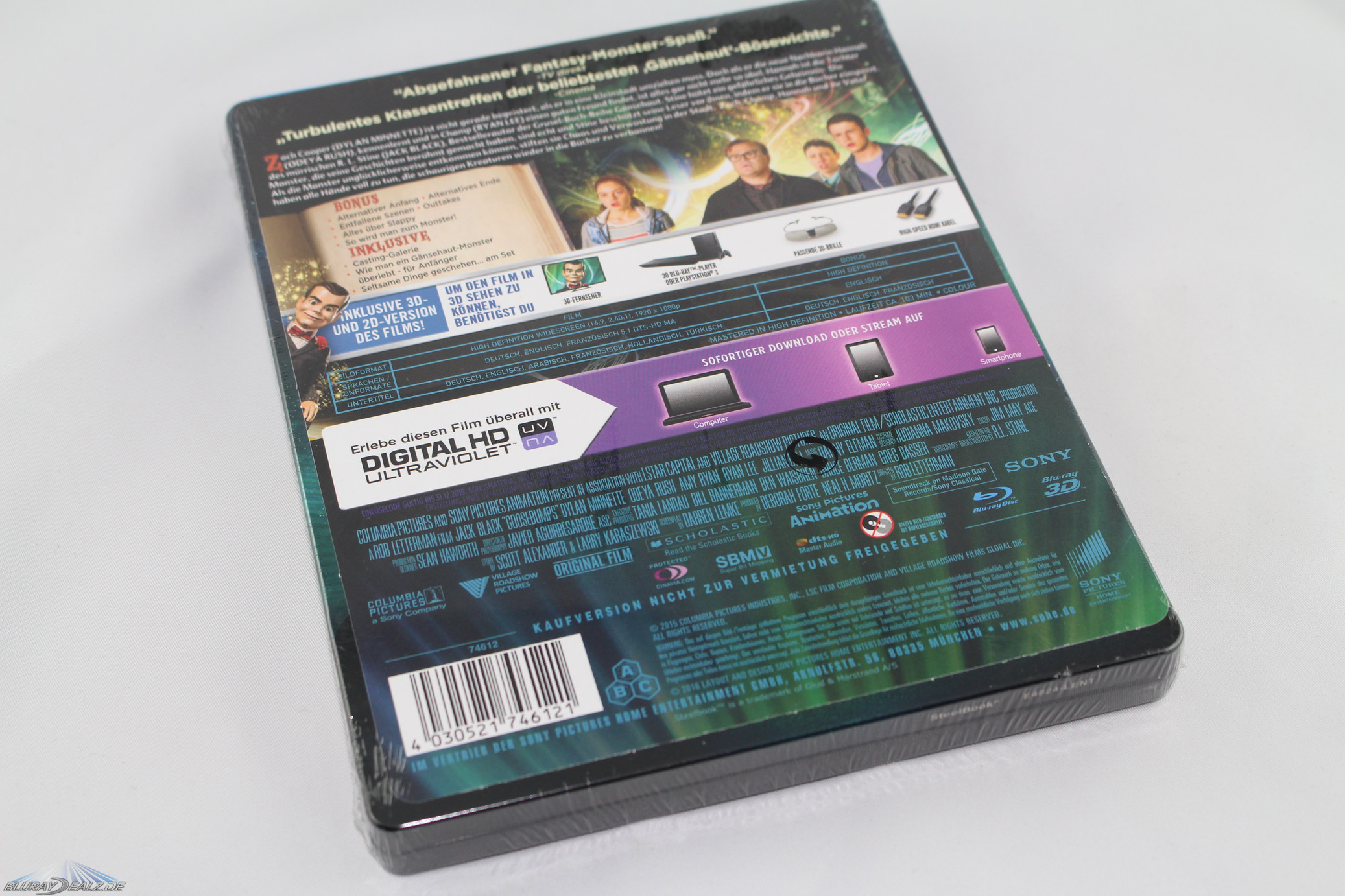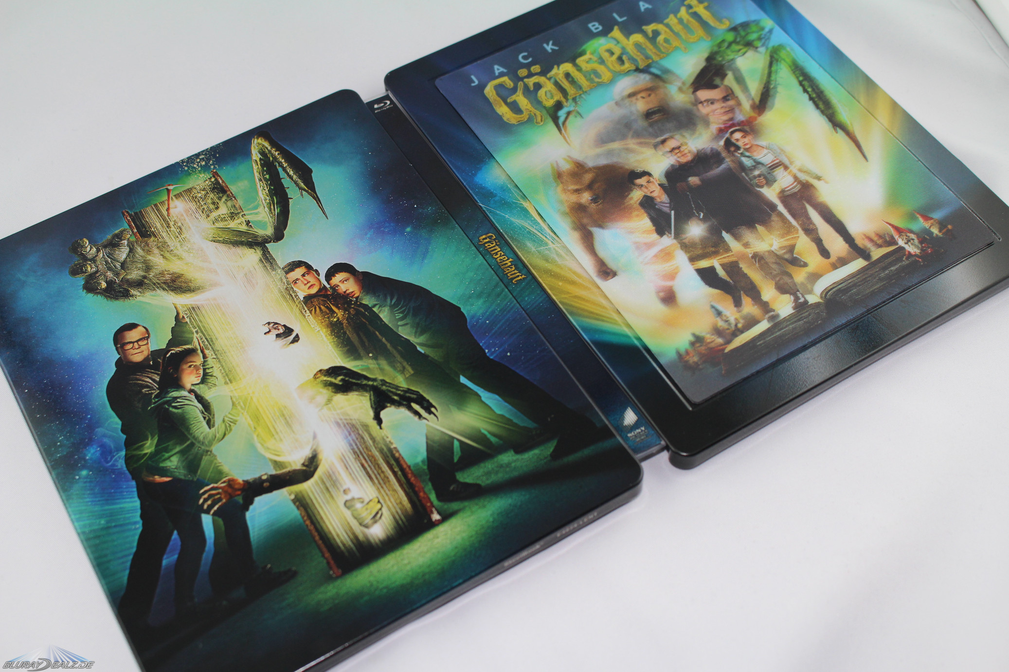Die MediaMarkt bzw. Saturn-exklusiven Sony 3D-Lenticular Steelbooks setzen ihre gute Serie der letzten Monate fort. Nach Pixels, The Walk und Hotel Transsilvanien 2 jetzt also Gänsehaut. Wieder hat das Steelbook eine Rahmenprägung, einen wunderbar scharfen und sehr farbenreichen Druck, gelungene Motive und einen prächtigen Innendruck. Das Herz eines Steelbooksammlers schlägt hier höher – und für die Lenticular-Fans (wie mich) ist die Lenticular-Karte als Magnet auch dabei.