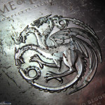 Der Titel „Game of Thrones“ ist etwas leichter geprägt (embossed), genauso auf den Spines. Zusätzlich ist alle weitere Schrift (Unterschriften + Targaryen-Motto; auch auf den Spines) hauchfein tiefengeprägt (debossed), wie es schon beim Schuber des Vorgänger-Digipacks der Fall war. Sehr edel.