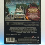 Was sofort beim Steelbook ins Auge sticht, ist das gut gewählte Covermotiv. Es zeigt den ECTO-1 aus einer leichten Vogelperspektive, wie er gerade durch ein Kornfeld rauscht. Deutlich sichtbar ist auch der Filmtitel zu sehen. Es ist erfreulich dass man hier beim Cover nicht auf das der Amaray zurückgegriffen hat. Auf der Rückseite sieht man in großer Ansicht das gelbe Nummernschild mit dem Schriftzug „ECTO-1“.