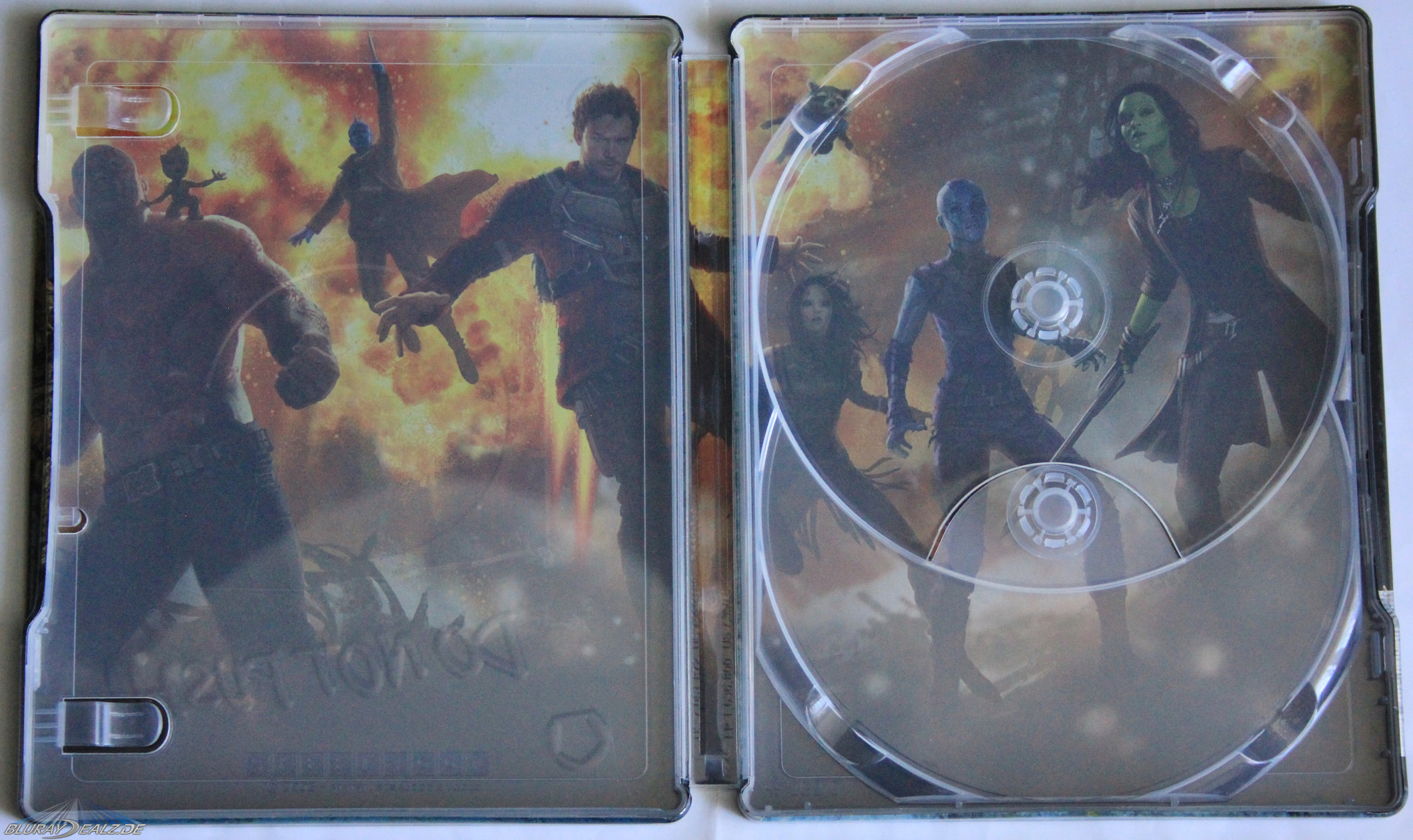 Bei mir liegt das Ding auch schon seit Montag rum. Allerdings finde ich das Steelbook, mal abgesehen von hochwertigen Prägungen und Lackeffekten, allein vom Design her einfach mal extrem hässlich. Der starke Fokus auf den kleinen Groot hat mir schon im Film nicht so zugesagt und das finale Covermotiv finde ich nun irgendwie langweilig und blöd. Dazu kommt noch der leere Spine.