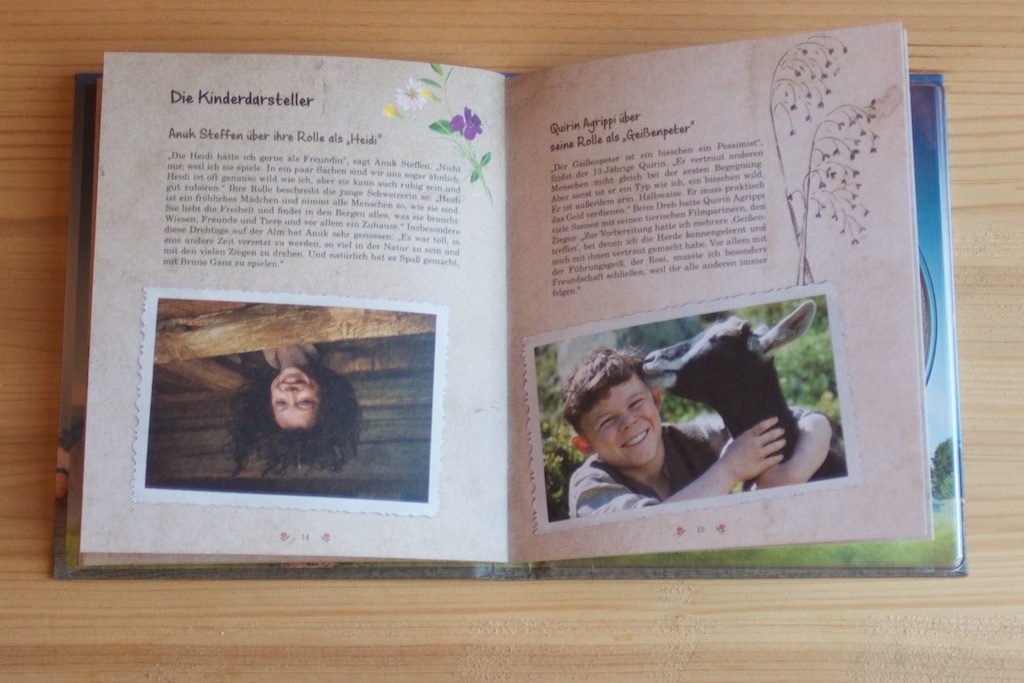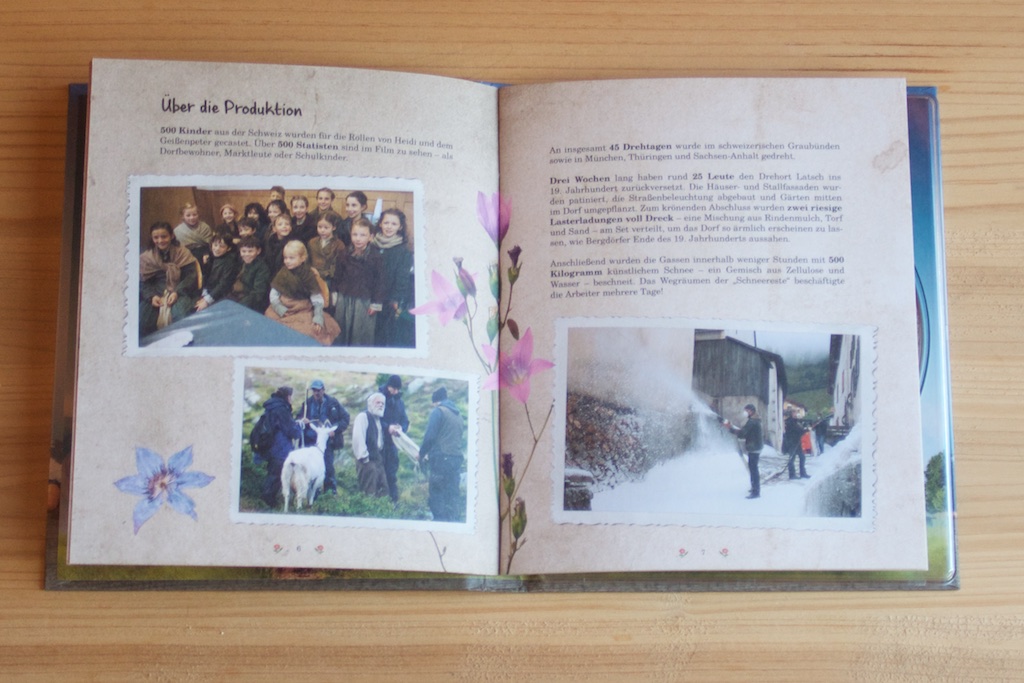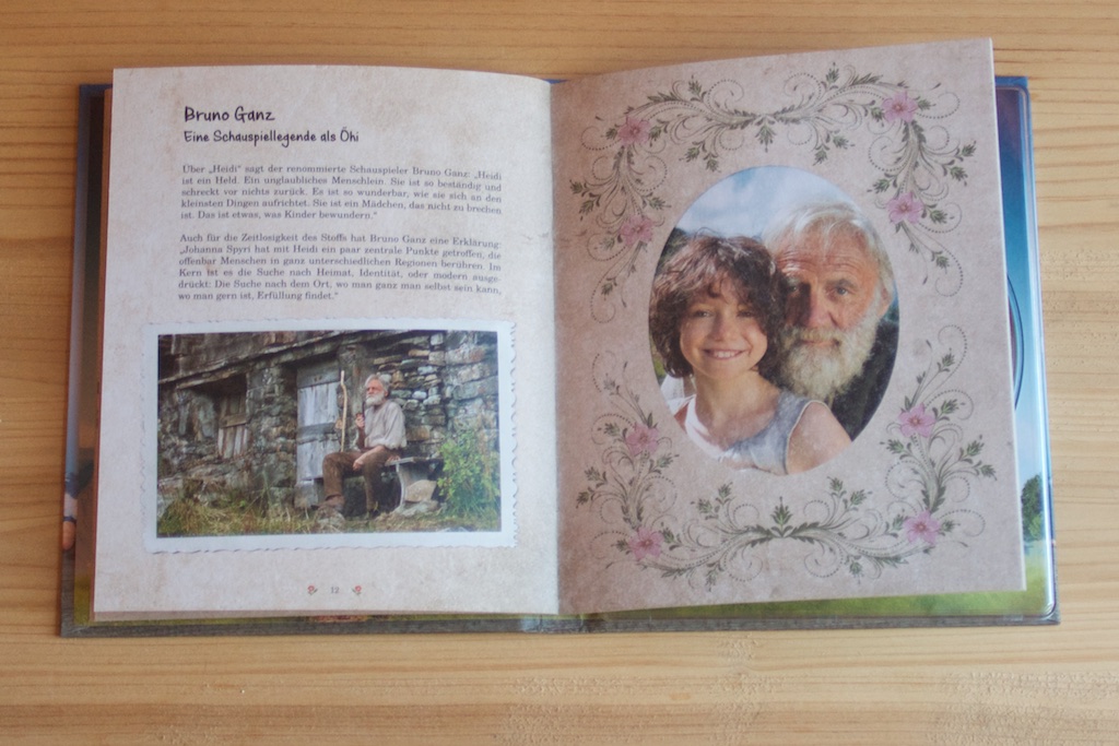 Um es gleich mal vorweg zu nehmen… Von dieser Special Edition könnten sich so manch Filmveröffentlichungen hinter denen auch eine deutsche Produktion steht, eine dicke Scheibe abschneiden. Die Edition von Studiocanal kommt als liebevoll gestaltetes Digibook daher, welches auf rauem Papier gedruckt wurde. Nach dem Öffnen, findet man ein fest verklebtes Heftchen vor, welches 20 Seiten stark ist und viele Infos rund um den Film beinhaltet. Jede Seite ist neben kurz gehaltenen Texten auch mit div. Bildern gespickt und sehr liebevoll gestaltet. Zusätzlich zum Heft findet man auch noch ein bisschen Bonusmaterial vor. Hierbei handelt es sich um fünf Postkarten, ein gefaltetes Filmposter (etwa 46,5 x 29 cm groß) und zwei blauen Freundschaftsbändchen, die auf einer Seite den Schriftzug „Heidi – Beste Freunde“ besitzen. Also ein kleines Care Paket für die ganze Familie neben dem Film.
