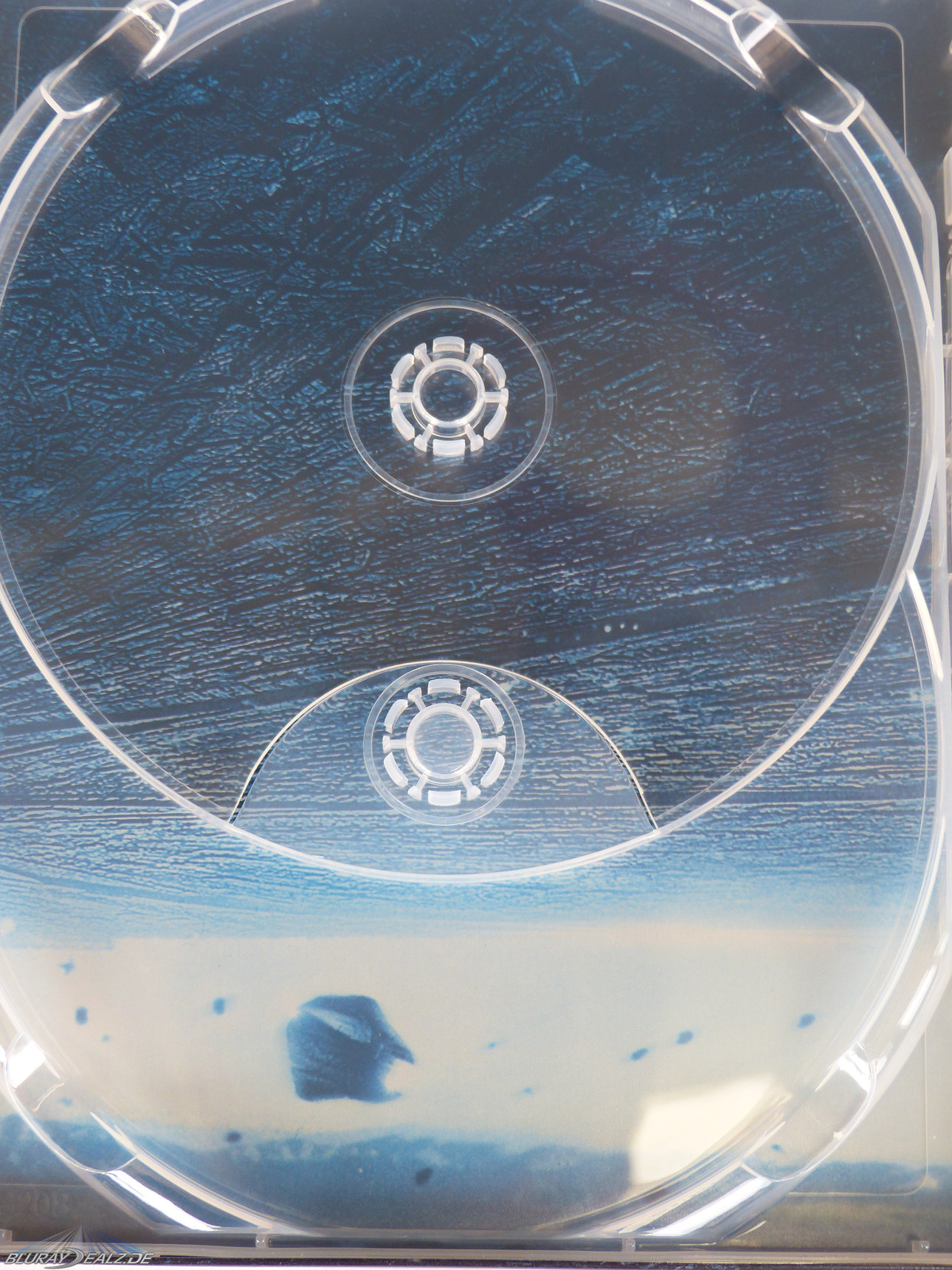 Das Steelbook ist Gott sei Dank matt gehalten. So bleibt das Problem mit den Fingerabrücken nicht im Raume stehen. Hauptfarbe ist schwarz/blau, welches heller wird. Das hellere Blau gibt einen leichten Schimmereffekt frei. Der Druck ist echt gut geworden. Leider sucht man hier vergebens nach einer Prägung…