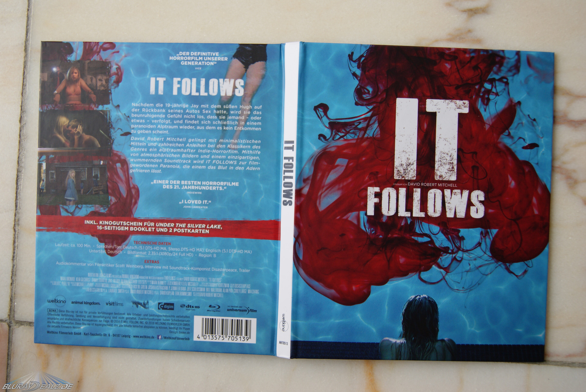 Das 16seitige Booklet überzeugt mit vielen Bilder und Informationen (u.a. Interview mit dem Regisseur, Infos zum Film selbst, Vorschau auf Mitchells neuen Film und ein interessanten Mindmap zu „It Follows“ und dessen Beteiligte und Einflüsse.