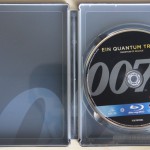 Ich finde das Design – nicht zuletzt wegen Deiner Review – immer besser. Jetzt kommt ein Aber: aber etwas Entscheidendes fehlt mir und das ist das Filmplakat. Wie bei Star Wars, Indiana Jones, etc. sind die Kinoplakate (vor allem vor den Photoshop Plakaten) kleine Kunstwerke, die ich nicht missen möchte. Anstatt ein fast leeres Backcover oder dies abgeschnittene 007 Logo als Innenprint hätte ich mir das Filmplakat gewünscht. Vielleicht als Hochformat über das gesamte Innenteil? Das wäre mal was gewesen.
