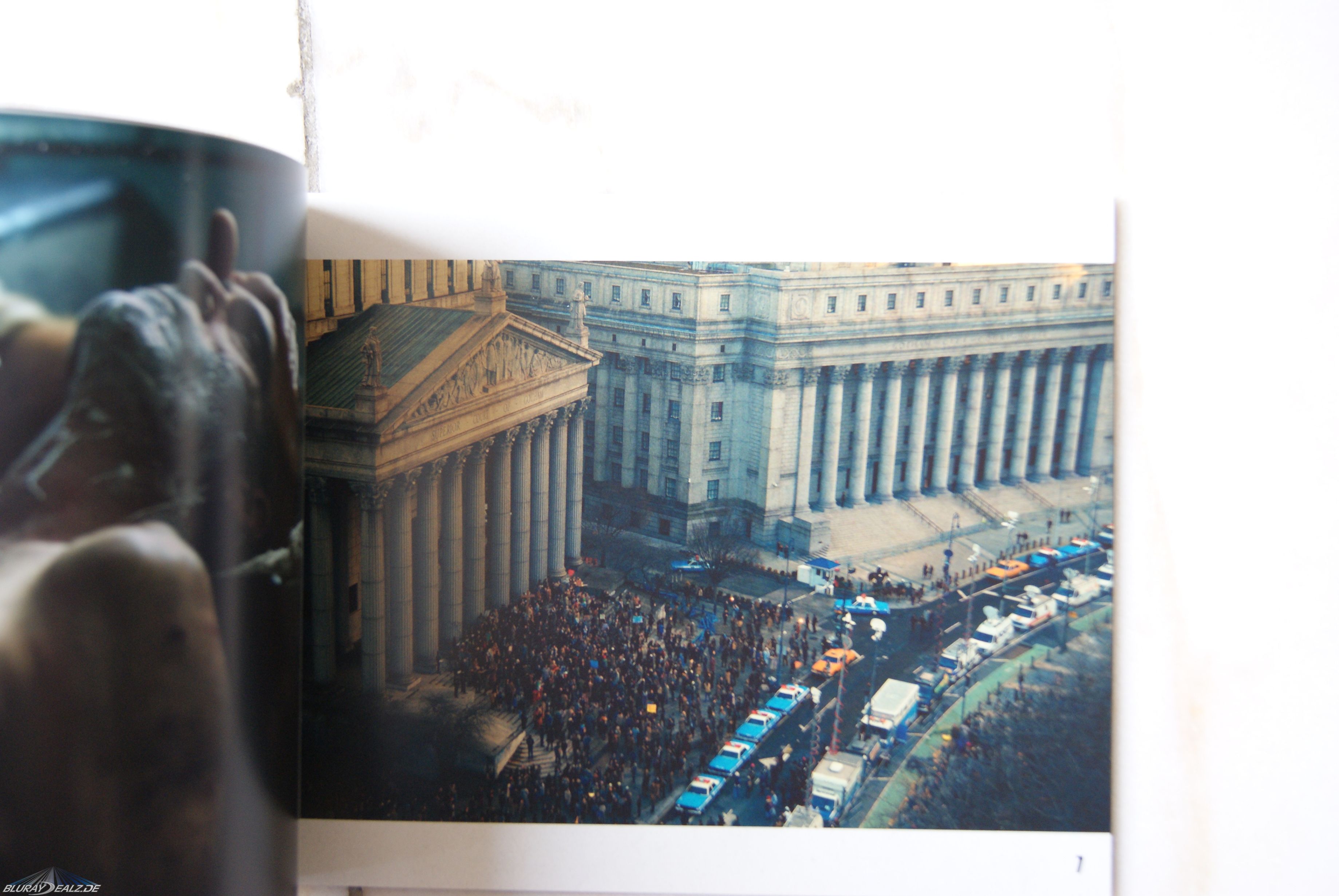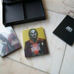 Die Umverpackung kommt schlicht und mit einzelnen Spotgloss-Elementen bei allen Schriftzügen. Beim Öffnen gibt es einen – auf die Dauer sicherlich an Effekt verlierendem – Soundeffekt. Der Öffnungsmechanismus ist zudem wertig mit einem Magneten versehen. Im Inneneren finden wir 2 (!) Steelbooks, zu jedem der Filme eines und dazu noch ein schönes Foto-Booklet und sechs schicke Art-Cards, die zusammn ein weiteres Motiv bilden.