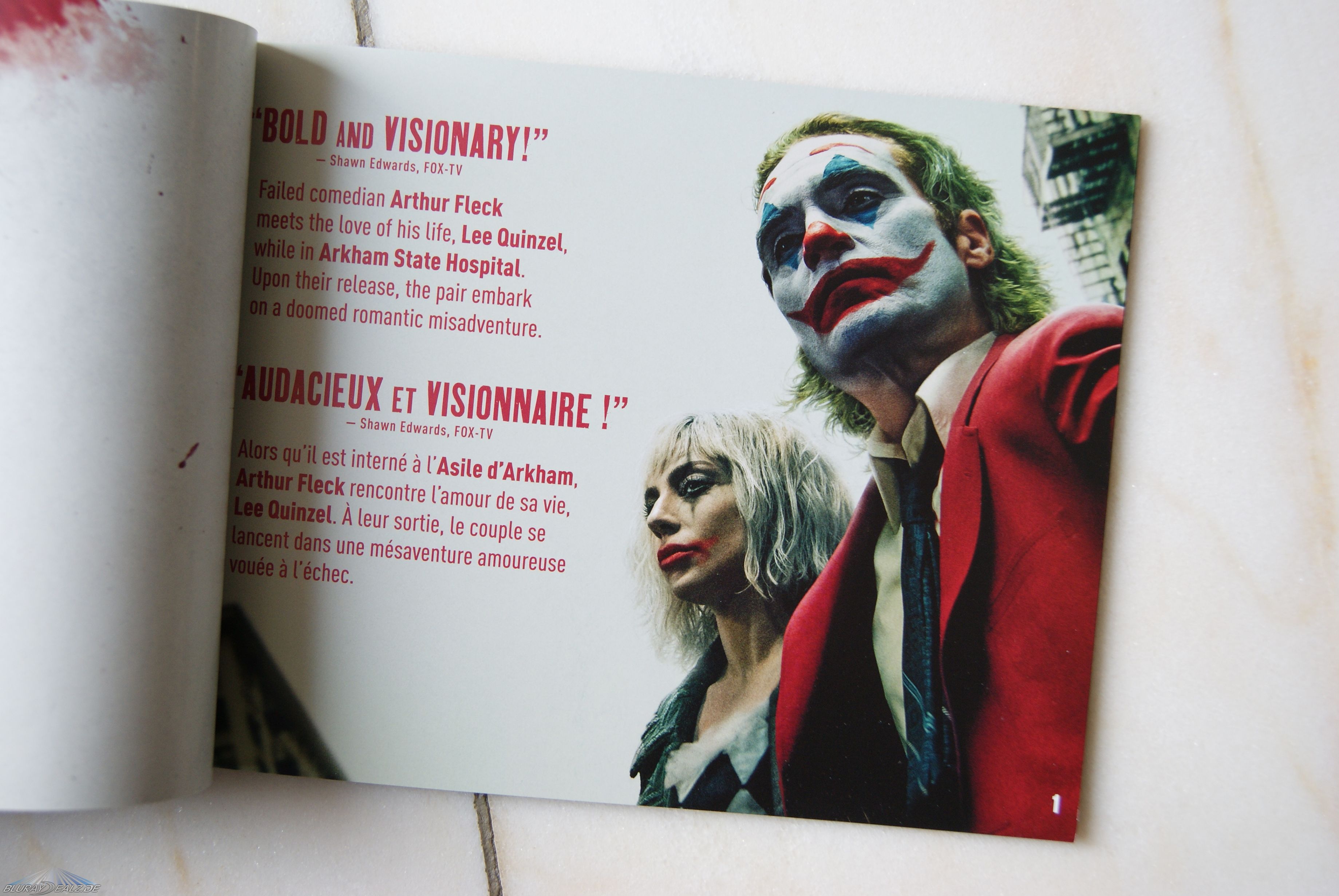 Bei dem Booklet handelt es sich um einen Ausschnitt aus dem „The Art & Making of Joker: Folie à Deux“. Der wenige Text ist in Englisch und Französisch gehalten, schade dass es hier bei einer deutschen Edition keine Übersetzung gibt. Da es sich aber in erster Linie um ein schickes Foto-Booklet handelt, ist dieses Problem kein großes.