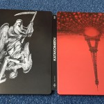 Genauso wie im oberen Bereich findet man im inneren des Steelbooks sehr viele Totenköpfe, die die doch gruselige Stimmung der Katakomben sehr schön wiederspiegeln. Die Rückseite beinhalten eine schöne Statue, die kein Boden hat, sondern zwei obere Körperhälften: Engel und Tod. Die Statue finde ich sehr gelungen.