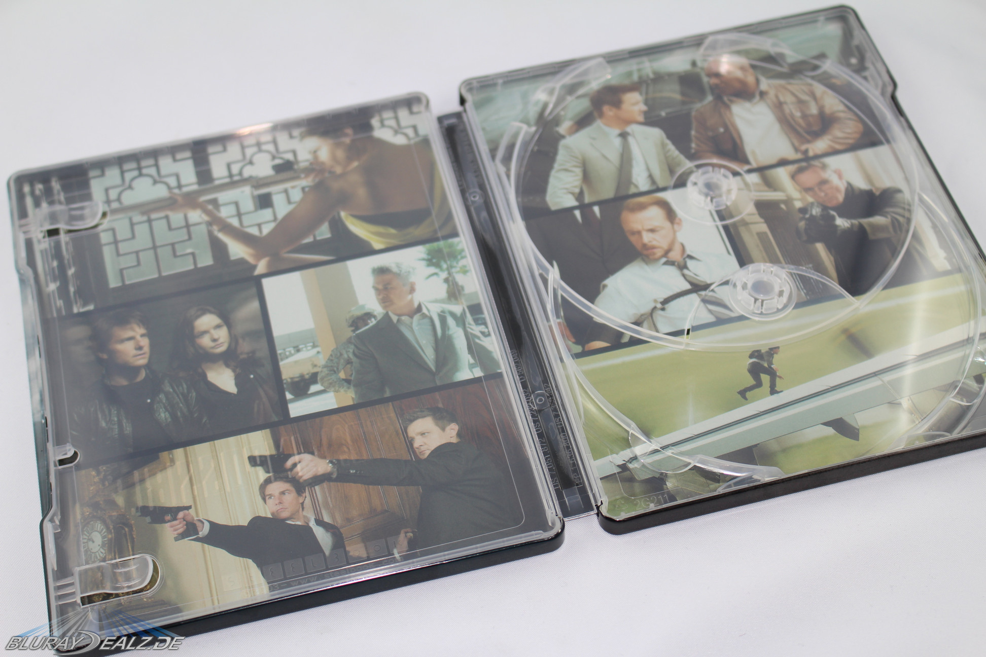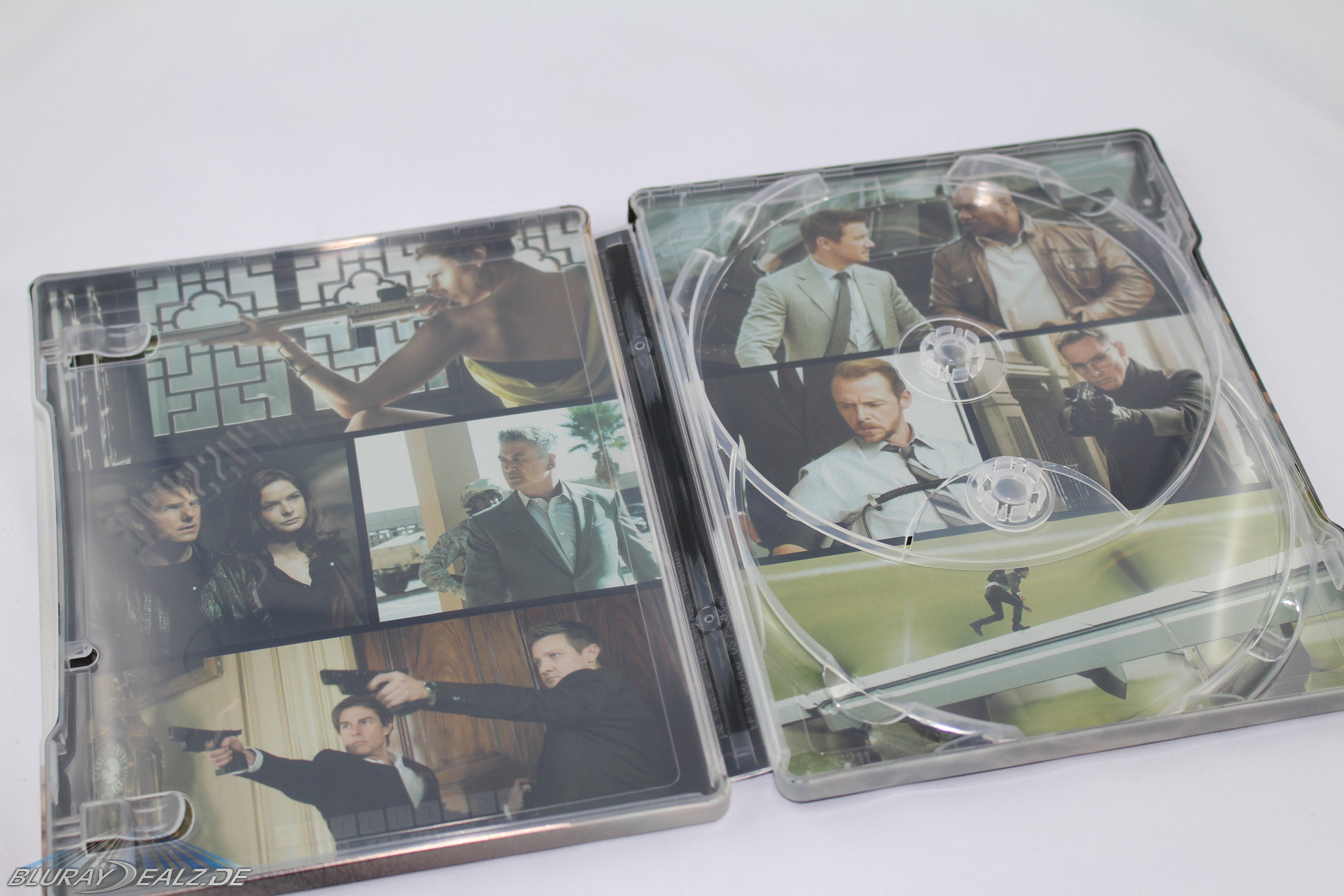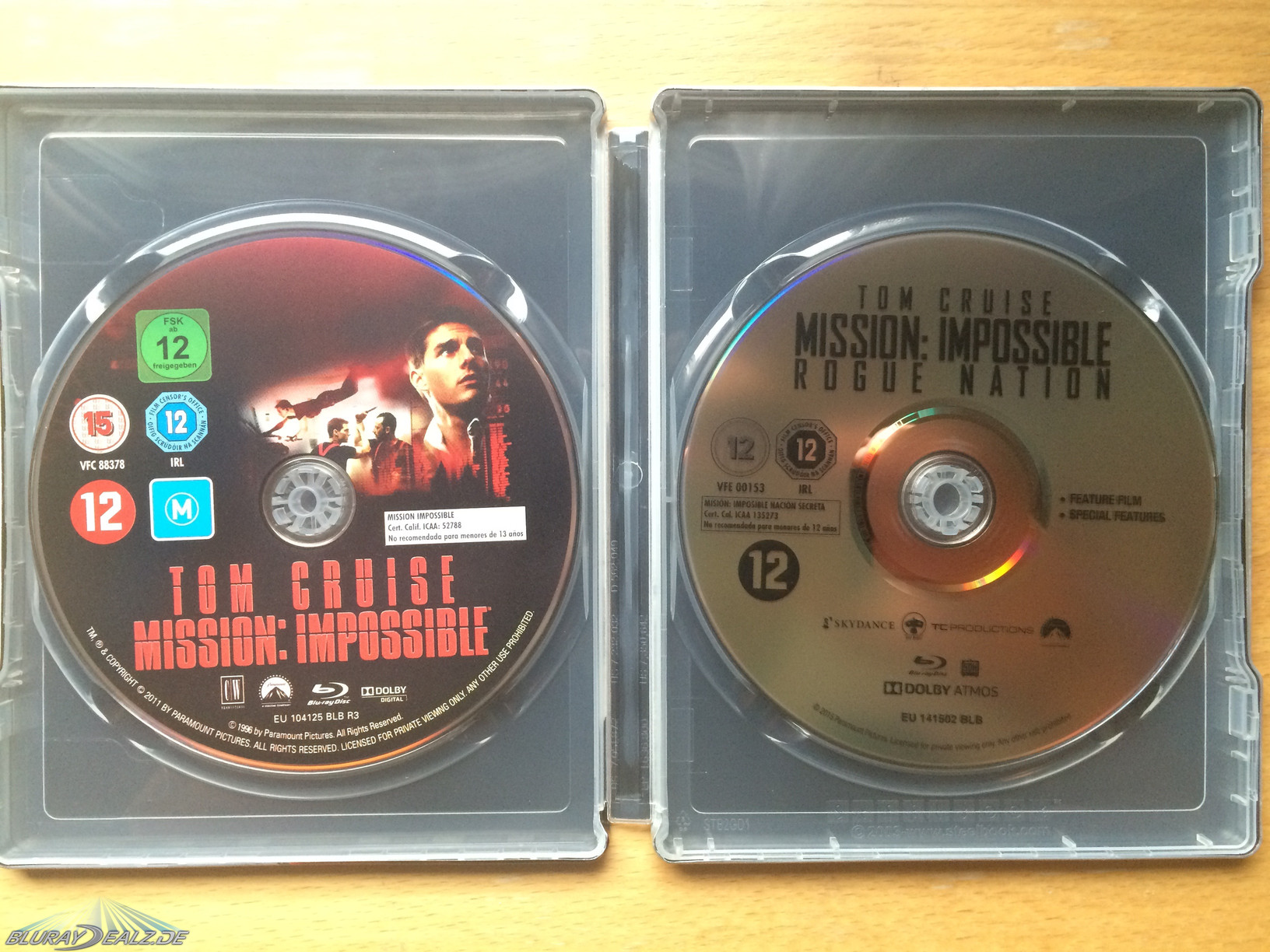 Enthalten im Steelbook sind alle fünf MI Filme. Die Steelbook sind auch wie bei den Game of Thrones Steelbooks übereinander gelagert, was den Vorteil hat, dass man kein Jumbo Steelbook benötigt. Die Discs sind dafür teilweise nur schwer aus dem Steelbook zu entnehmen. In den USA ist ein designgleiches Steelbook als Jumbosteelbook bei Best Buy veröffentlicht worden.