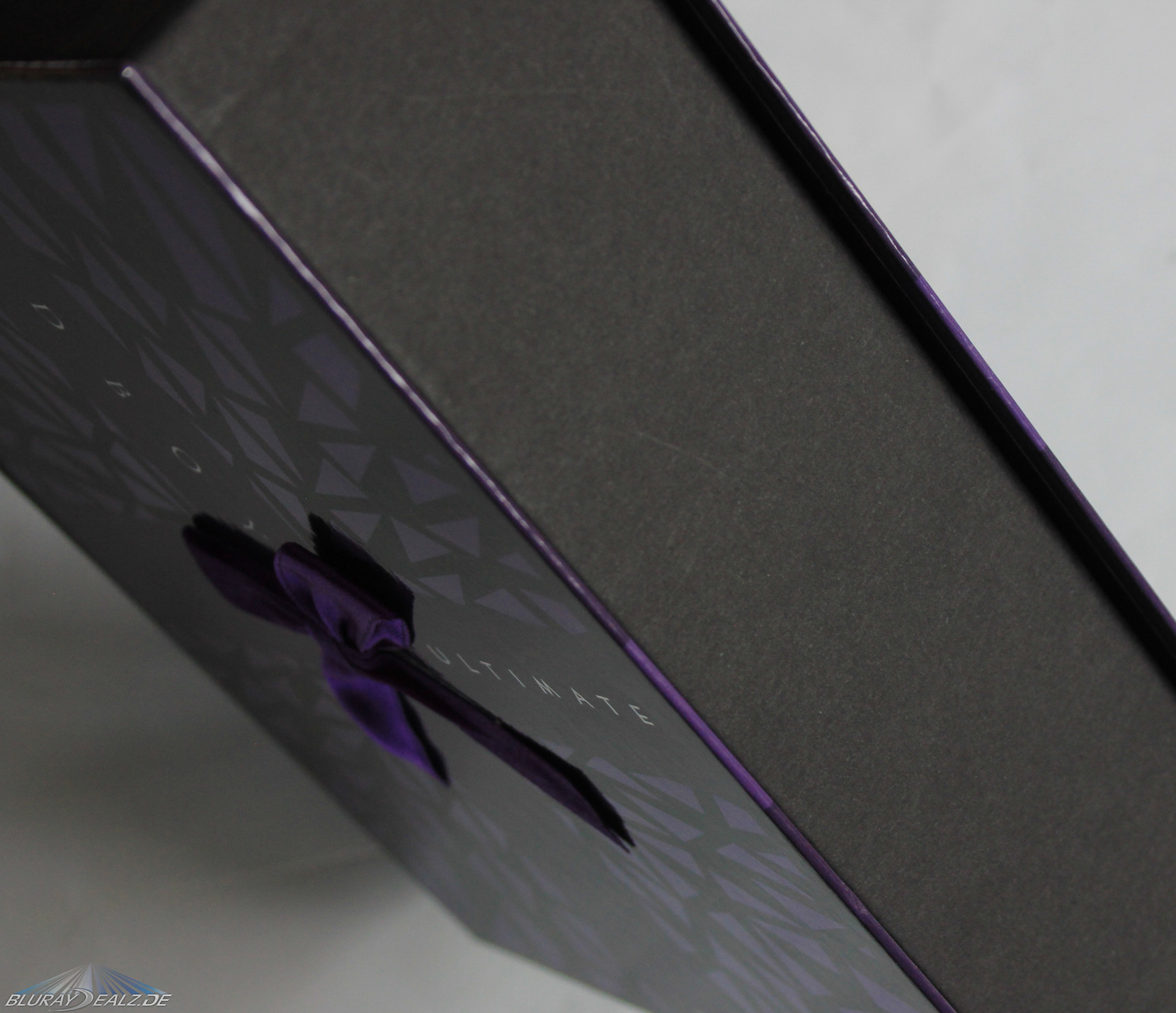 Unter der Folie ist dann auch schon die Vorderseite der Ultimate Edition zu sehen. Auf ihr ist eine lila Schleife angebracht. Eigentlich eine wirklich tolle Idee, diese nicht bloß aufzudrucken, allerdings ist diese leider auch direkt der erste Kritikpunkt an Capelights neuestem Streich. Denn leider sieht man das doppelseitige Klebeband, mit dem die Schleife angebracht wurde. Das heißt: es ist auch etwas neben der Schleife zu sehen, wo es nichts zu suchen hat. Hier hätte man sich ruhig noch ein paar Sekunden mehr Zeit nehmen können um dieses passgenau unter der Schleife zu verstecken. Das ist mehr als schade und ein klarer Minuspunkt.