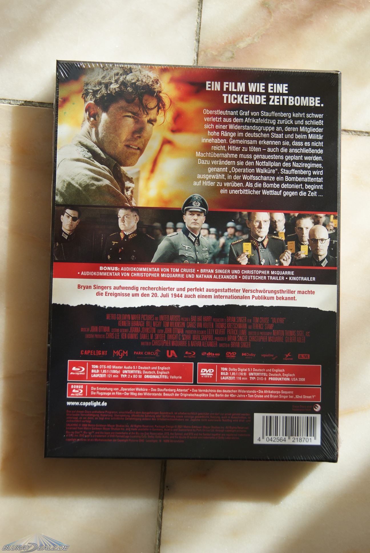 Innen finden wir vorne und hinten immerhin wieder durchgehende Motive und wunderbar vom Cover eingefasste Discs. Leider sind die Motive hinter den Trays auch nicht wirklich „anspruchsvoll“, sondern etwas langweilig. Das Booklet selbst strotzt mit vielen Fotos (aber eindeutig etwas zu Tom Cruise lastig, auch wenn wir ihm das Budget und den Bombast des Films verdanken) und dem heimlichen Star dieser Veröffentlichung: Der wirklich ausführliche und informative Text von Carsten Baumgardt „Ein deutsches Thema in Hollywood – Aufregung um Tom Cruise als Hitler-Attentäter Graf von Stauffenberg“.