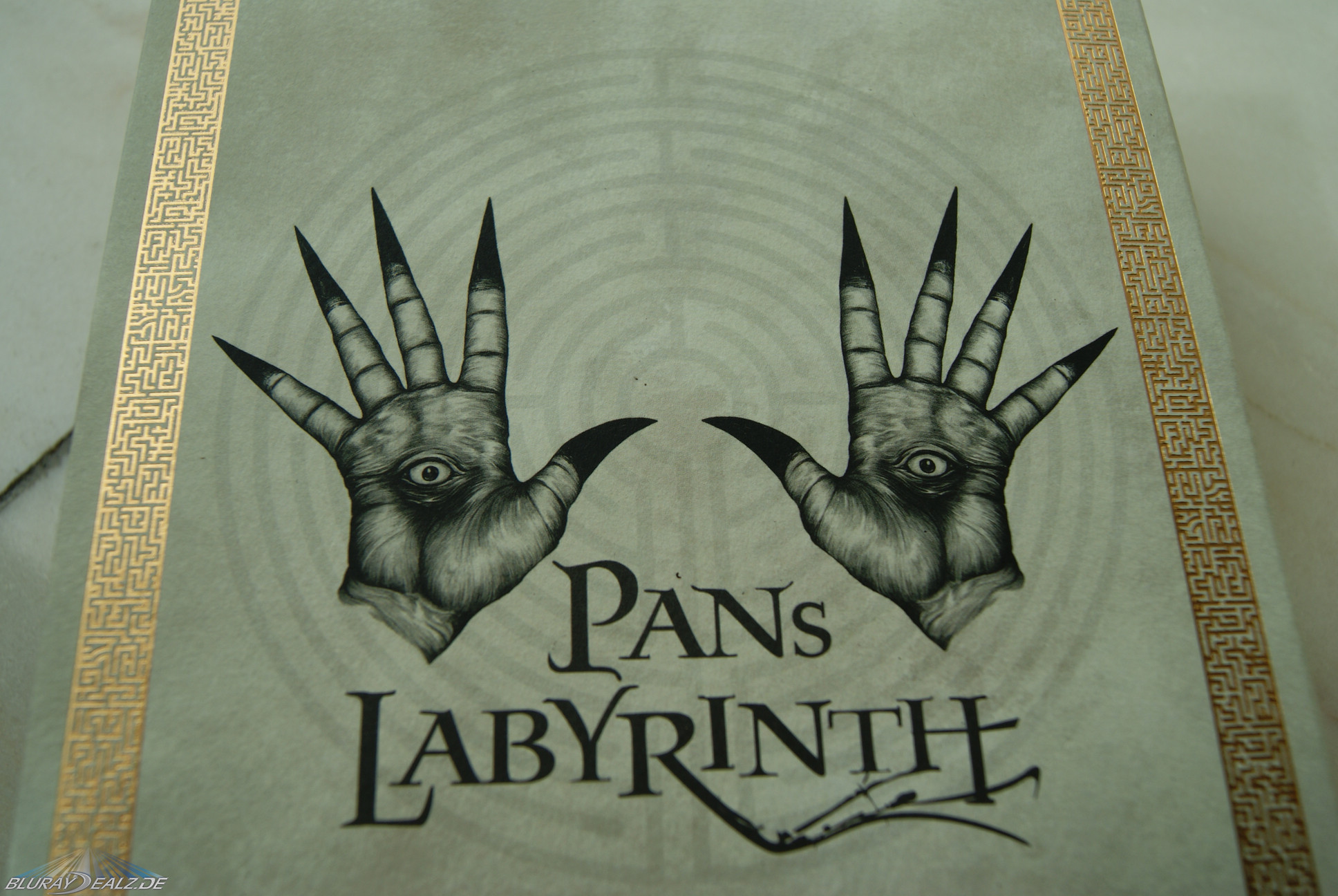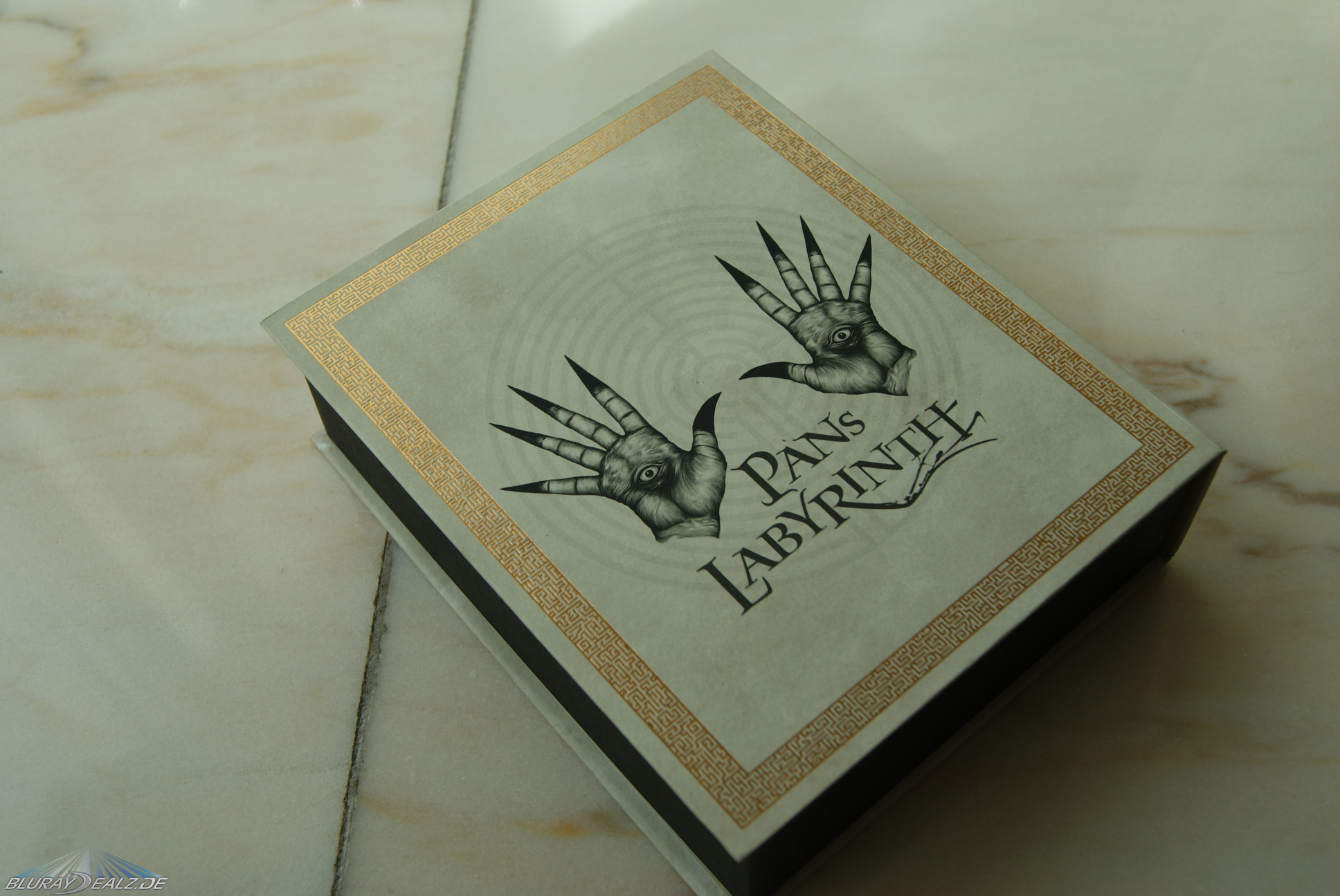 Das Cover auf der Vorderseite stammt von Derik Hobbs und wurde für die Ultimate Edition freigegeben. Das Motiv auf der Rückseite – die „Augenhände“ des „Pale Man“ – wurde von gleichen Künstler exklusiv für diese Edition angefertigt. Auf beiden Seiten sieht man das Labyrinth selbst unauffällig wie eine Art Wasserzeichen – sieht blendend aus. Apropos blenden: Die goldene Umrandung ist ein Kupferfoliendruck, welcher wunderbar im Licht glänzt. Ganz stark, wie auch das Tintorettopapier auf dem alles gedruckt wurde. Letzter kleiner Höhepunkt: Der Schließmechanismus funktioniert mit einem Magneten.