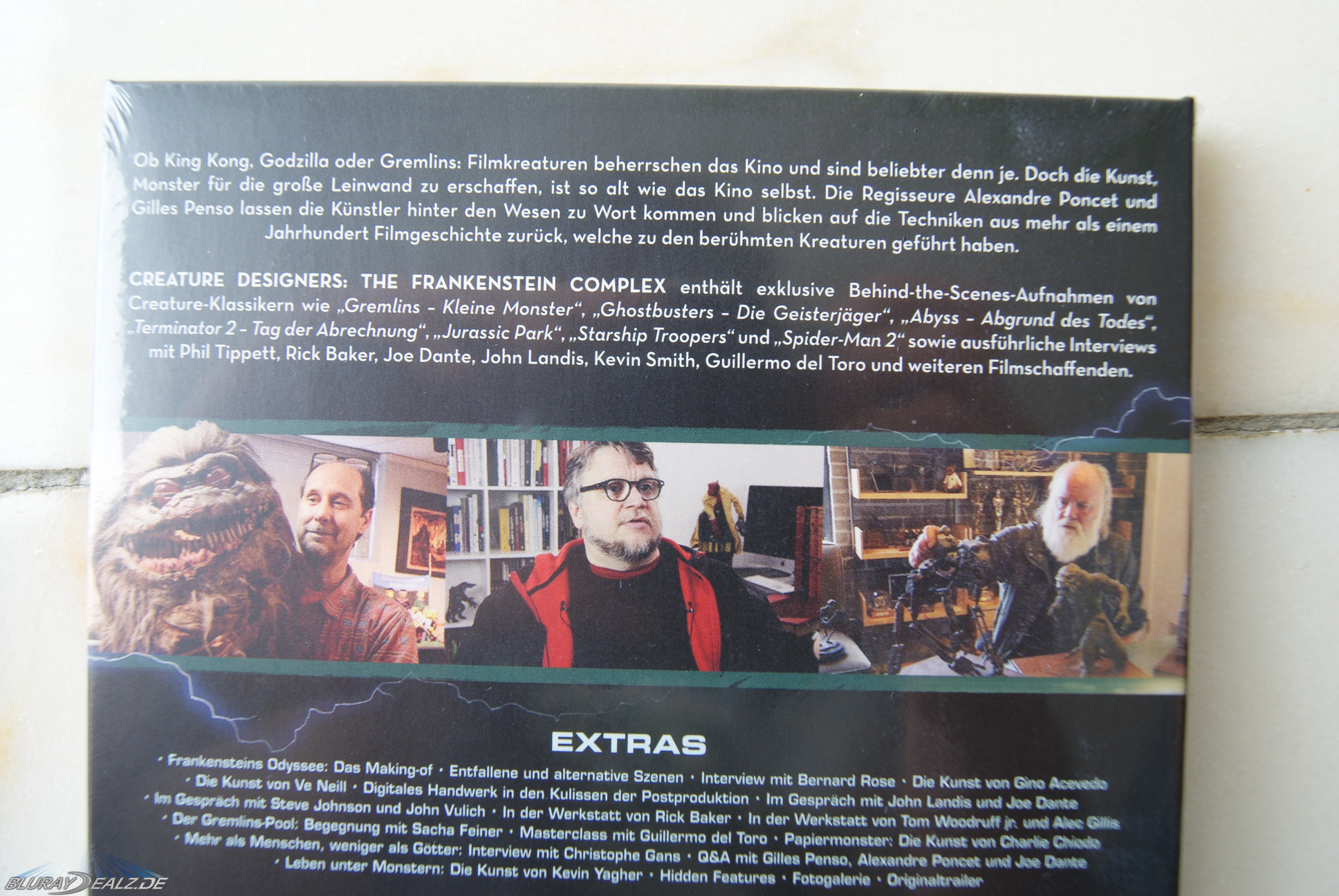 Was für ein Extra ! Die französische Dokumentation „The Frankenstein Complex“ beschäftigt sich mit der Arbeit diverser Regisseure und Künstlern (z.B. zu den Filmen Hellboy (Guillermo del Toro), Gremlins (Joe Dante), Star Wars (Rick Baker), Dogma (Kevin Smith), Terminator 2 (Denis Muren) ) zum Thema „Creature Design“ und „Digitale Effekte“.