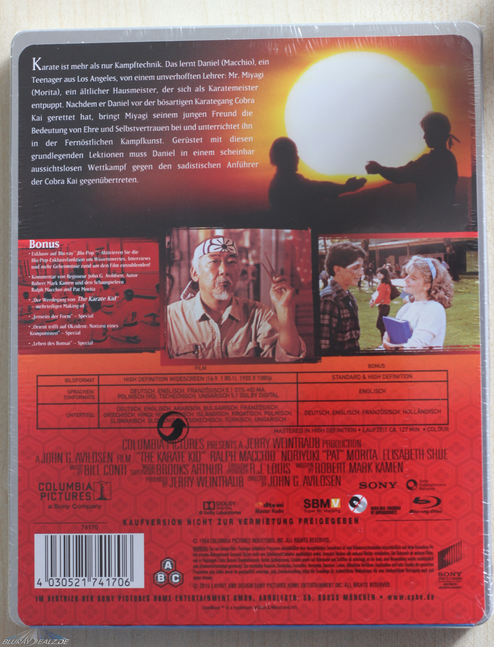 „Einzig das Karate Kid-Steelbook sticht da heraus und das Silber (Rahmen Front und Artwork fast gesamte Rückseite) glänzt bei Neigung des Steelbooks extrem, was wirklich ein schöner Effekt ist.“