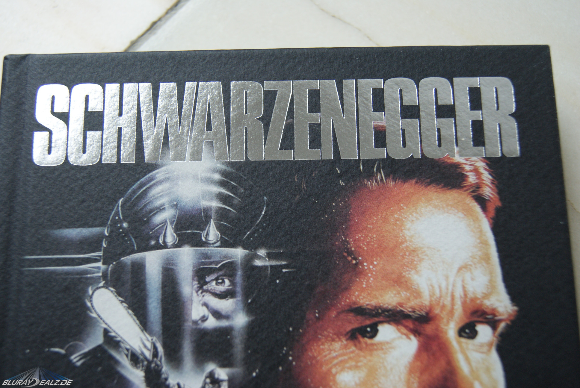 + Titel, Schwarzenegger-Schriftzug und Text hinten aus silberner Heißfolie (leichte Prägung)