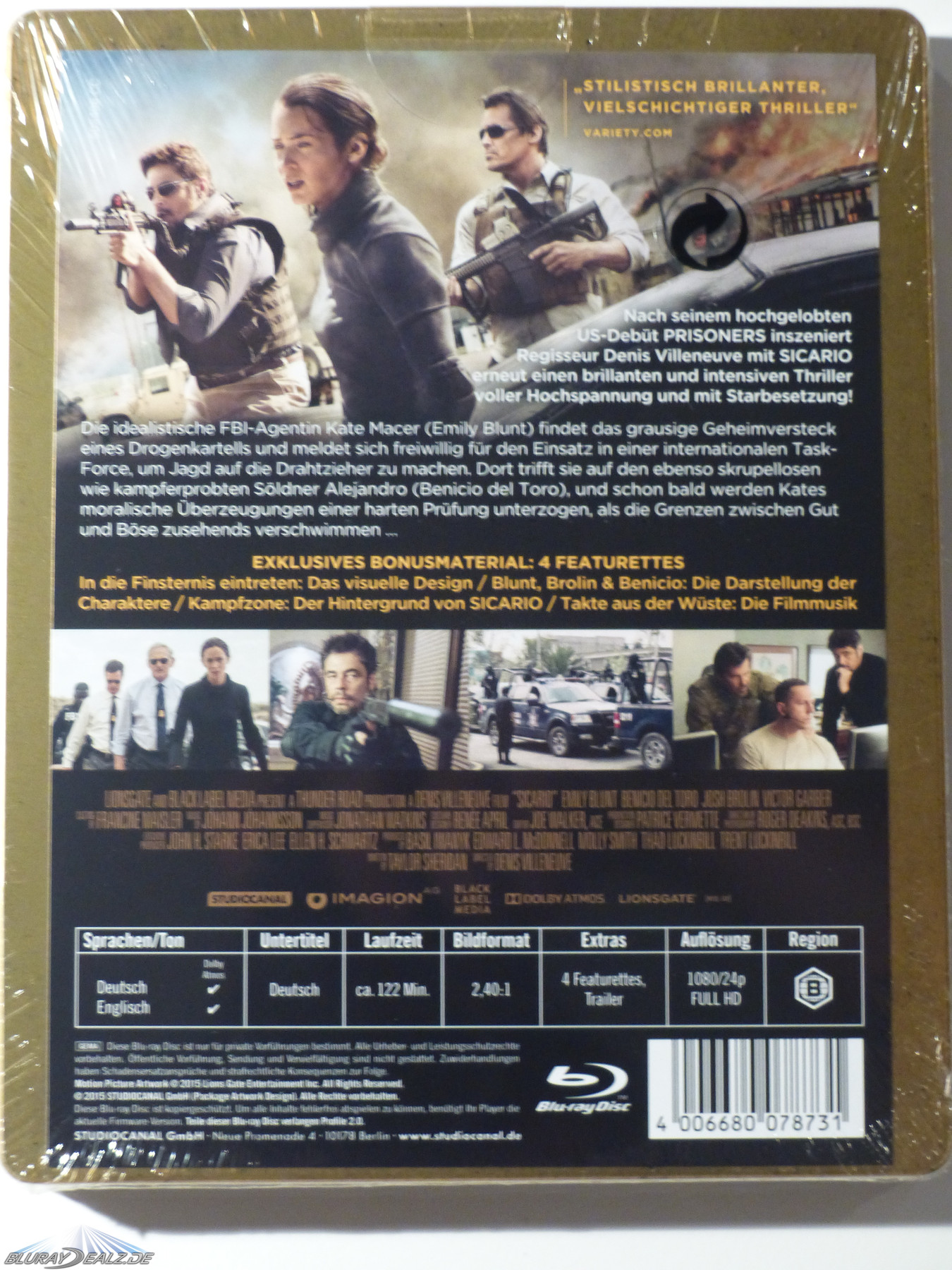 Neben der normalen DVD und Blu-ray Amaray wurde „Sicario“ zweimal als Steelbook veröffentlicht, einmal in Dt. und einmal im UK. Das dt. Steelbook gibt es auch u.a. bei Thalia, Buecher.de usw. zu kaufen.