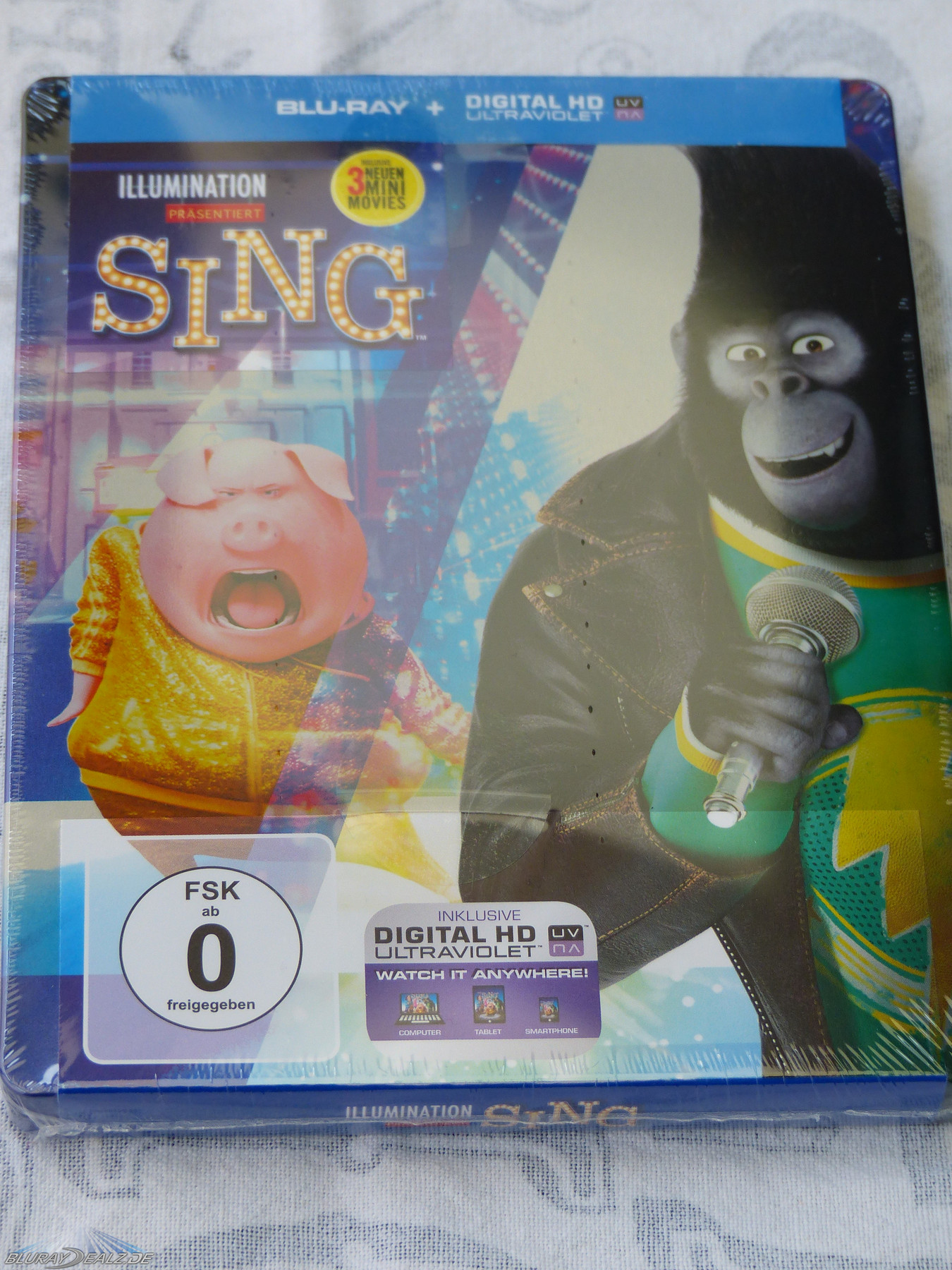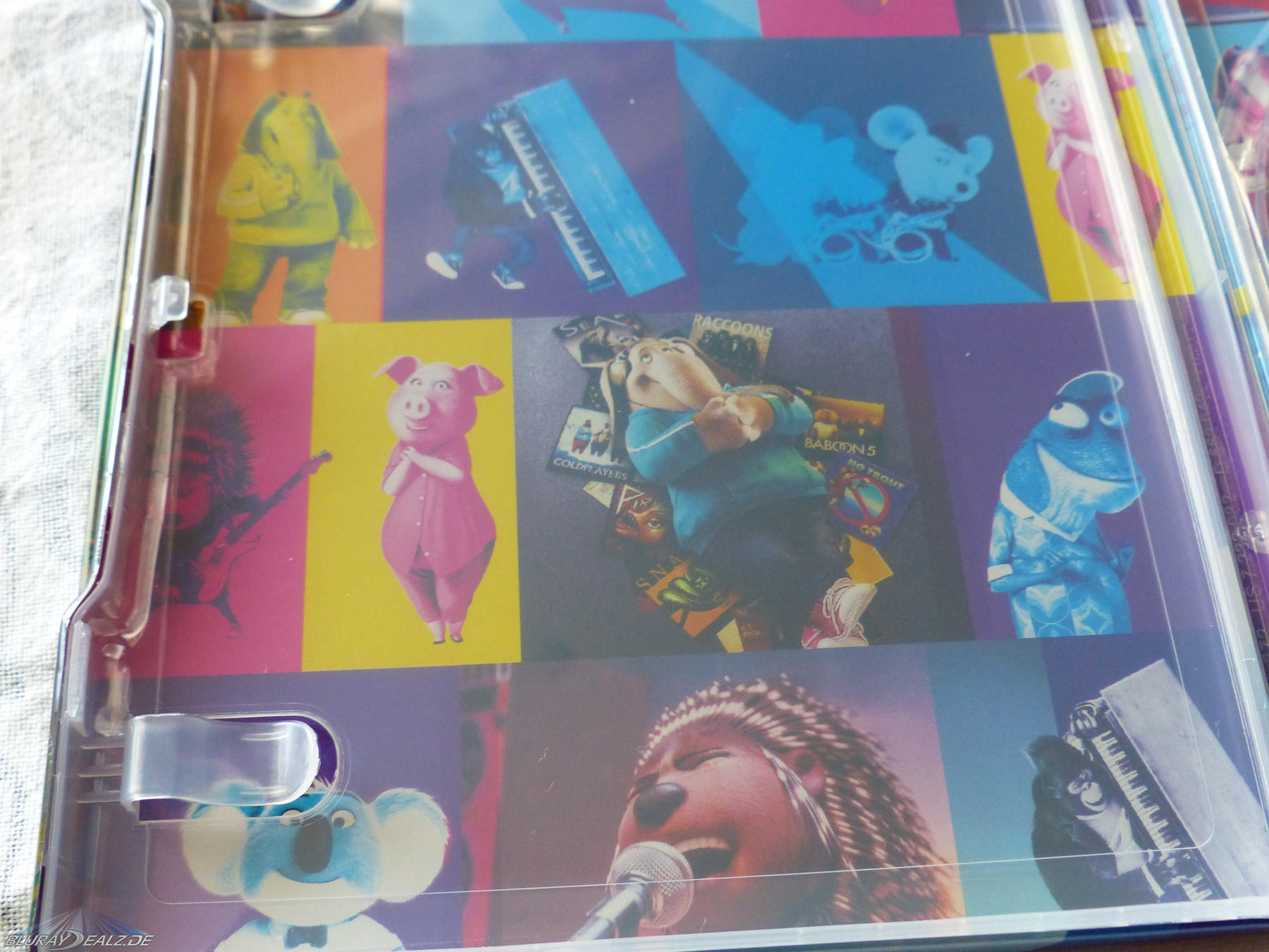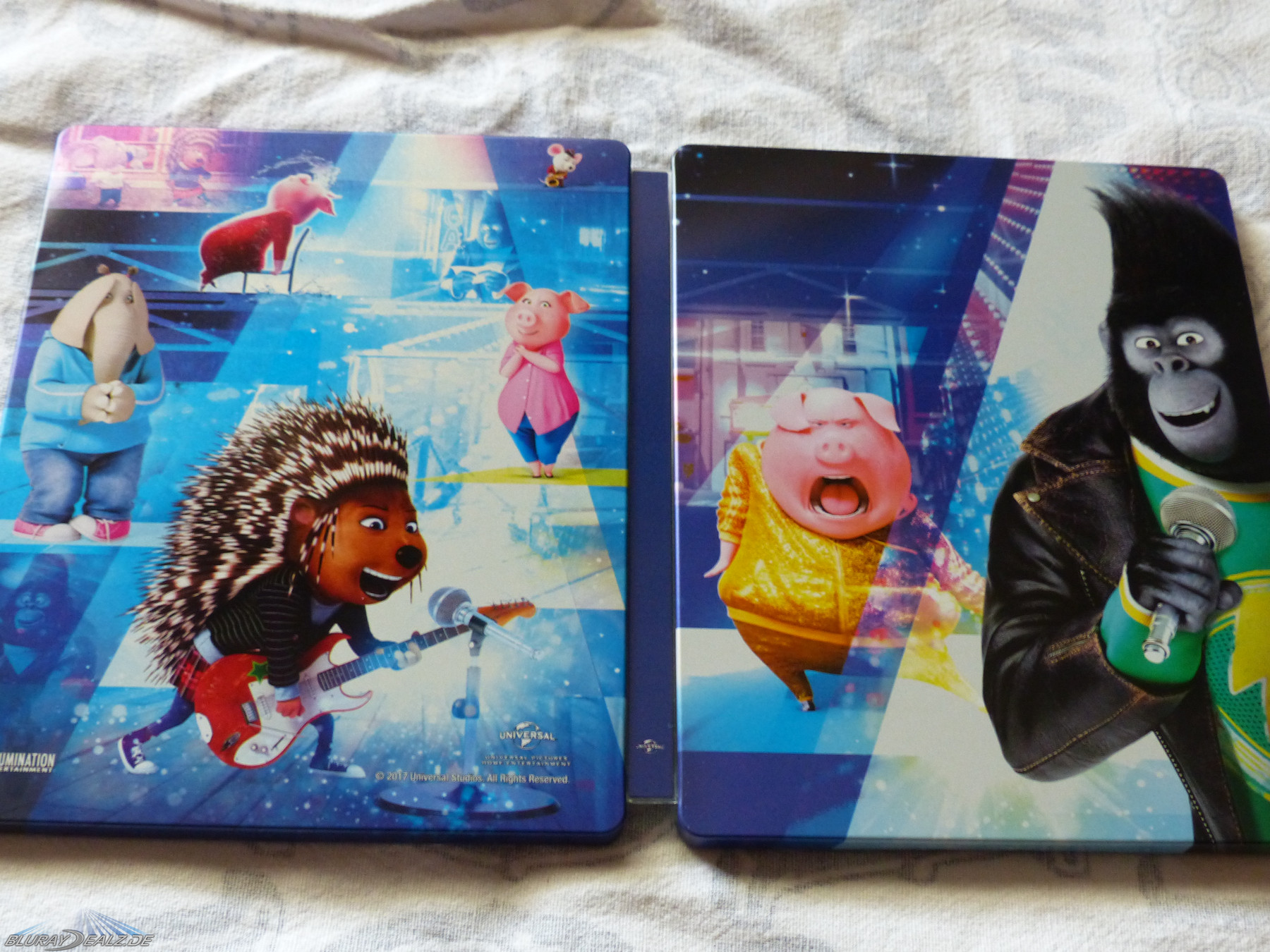 ILLUMINATION!!!!! Bei den Namen denkt jeder Filmfan zuerst an die kleinen gelben Tic Tacs mit den Peter Lustig Gedenkhosen. Doch die Tochter von Universal Studios kann auch anders und das haben sie 2016 mit „Pets“ und „Sing“ eindrucksvoll gezeigt. Regisseur Garth Jennings (war vorher Musikvideoproduzent und hat u.a. „Per Anhalter durch die Galaxis“ produziert) hat ein hochkarätiges Sprecherteam u.a. mit Matthew McConaughey, Reese Witherspoon (als Rosalita) und Scarlett Johansson (als Ash) zusammengestellt, die auch richtig viel Spaß am Film haben. „Sing“ feierte seine Premiere am 11.09.16 in Toronto und lief am 27.11.16 in Köln Europaweit an. Auf Blu-ray und DVD erscheint er am 06.04.17 im Handel. Neben den 4K, 3D und 3D Keepcases wird es noch ein 2D Steelbook geben, welches ich hier nun vorstelle. 2017 wurde „Sing“ in die Nominieeliste der Academy für den besten Titelsong und Soundtrack aufgenommen, hat es aber nicht geschafft.