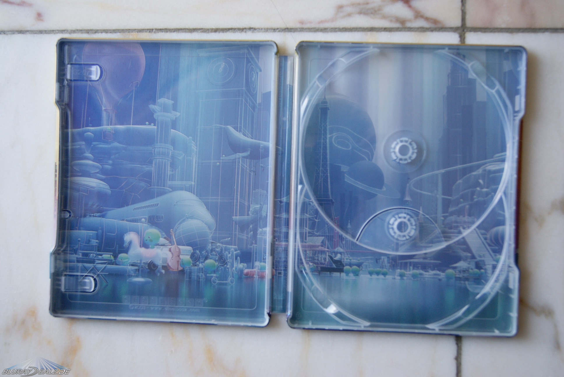 Das Steelbook ist trotz fehlender Prägung oder Spotgloss-Effekte durchaus gelungen. Besonders hervorzuheben ist hierbei die konsequente Fortführung der Motive auf den Spine, sodass sich beim Ausklappen des Steelbooks ein tolles Gesamtmotiv ergibt. Der farbige Innendruck ist wie bei Disney gewohnt sehr gut, aber hier gab es durchaus schon knackigeres.