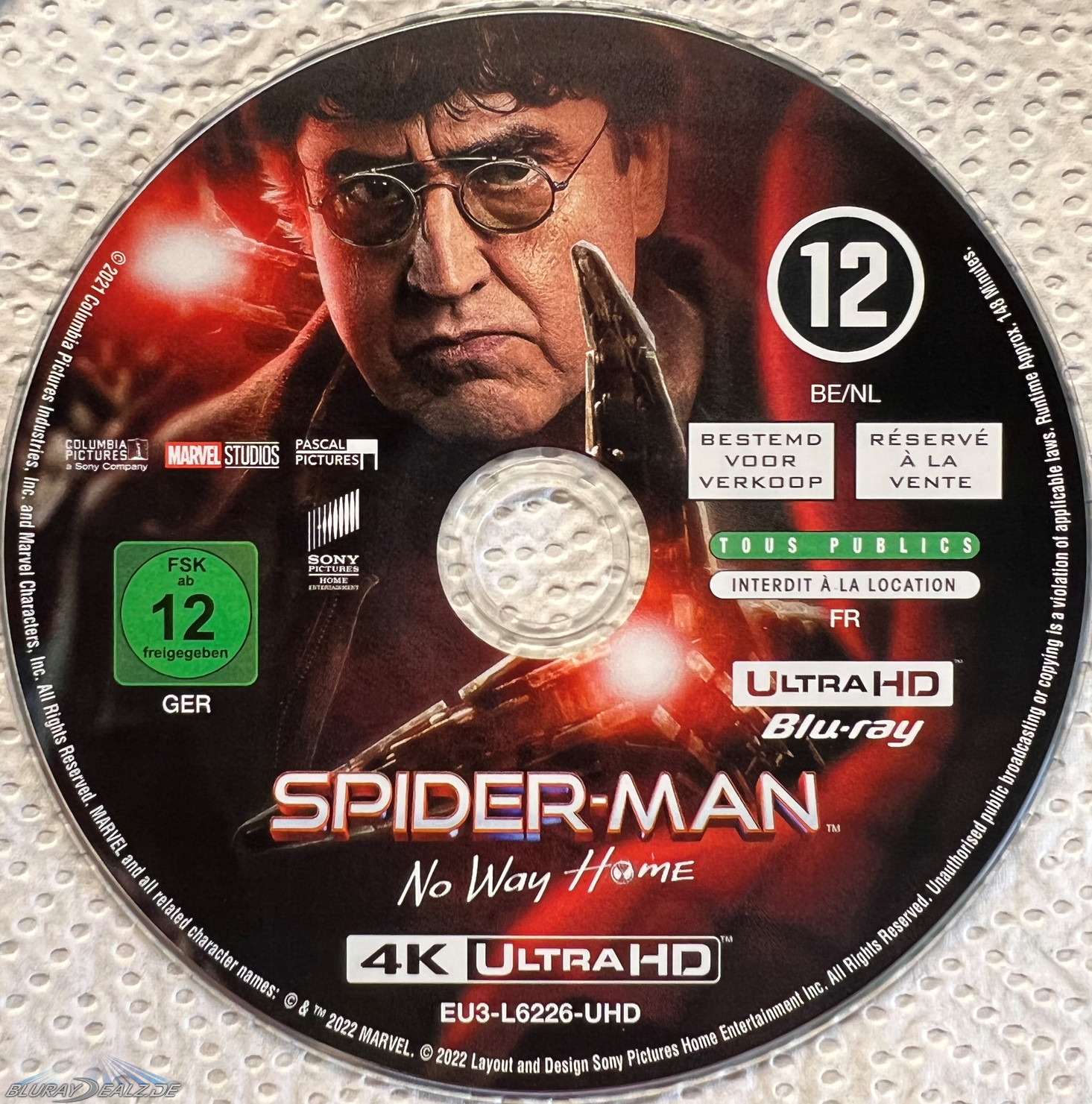 Die Disc ist auch sauber bedruckt, unterschiedliche Motive, sehr schön voneinander abgesetzt, ein Mal mit Spider Man und auf der UHD bekommen wir dann Doc Octopus geboten! Super Druck, sehr schön!