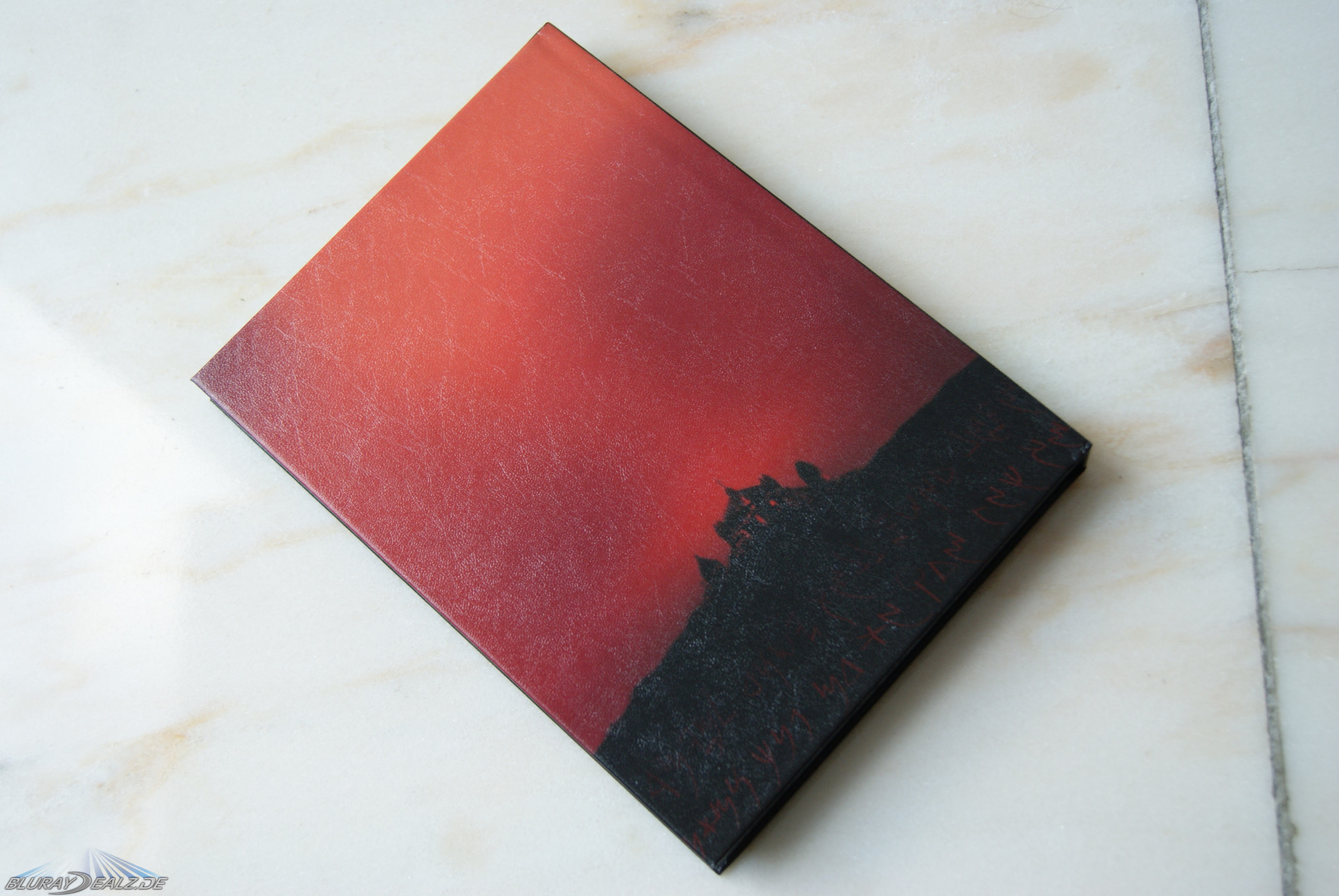 Nach Entfernen der Einschweißfolie, mit der auch der FSK-Flatschen verschwindet, haben wir den Blick frei auf das wunderschöne Mediabook. Das vor allem in Rot und schwarze gehaltene Mediabook hat eine wundervolle, strukturierte Buchoptik und ist ein echter Hingucker. Auf der Rückseite befindet sich das nicht verklebte Infoblatt, das alle Informationen und Spezifikation bereithält. Die Rückseite ist somit textfrei und zeigt ein düsteres Motiv in ähnlichen Farben wie die Vorderseite. Der Spine ist in schwarz, der Titel in weiß von oben nach unten geschrieben. Hinter dem Titel sieht man wie auf der Vorderseite auch rote Wundmale.