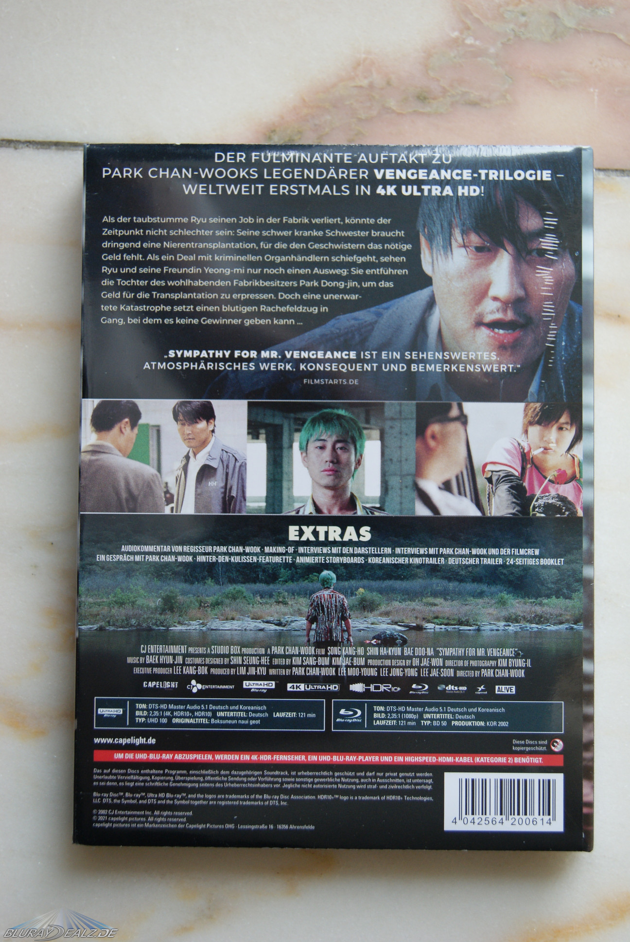 Zum Film muss ich sagen, dass der Zahn der Zeit hier wirklich genagt hat. Ich mag die Park Chan Wook Filme, aber Mr. Vengeance wirkt heute einfach ein wenig billig und trist. Hab sogar darauf verzichtet ihn mir auf Blu-Ray zuzulegen, da es einfach so viele Alternativen aus Korea gibt die wesentlich besser sind.