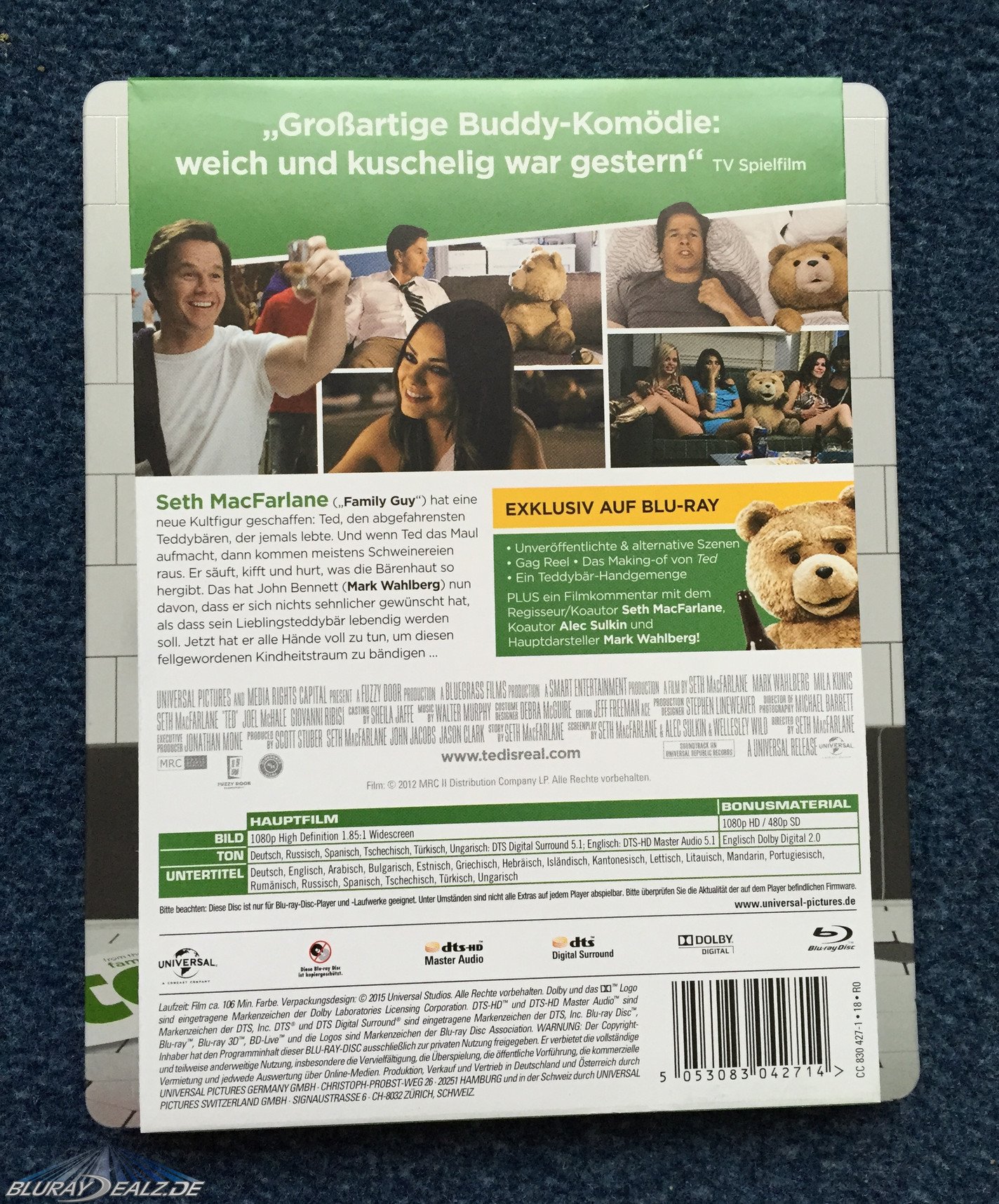 Das Steelbook zu Ted erscheint nicht Exklusiv am 04.06.2015 und ist überall im Handel erhältlich. Auf imdb.com hat der Film eine Bewertung von 7,0/10.