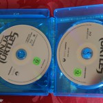 Dahinter ist dann die Amaray mit der 3-Disc-3D-Edition des Films. Ja, es ist in der Tat eine normale Amaray – nicht einmal ein O-Card-Schuber wurde spendiert, was meiner Meinung nach noch ein guter Kompromiss gewesen wäre. Die Amaray hat immerhin ein Wechselcover, sodass man den FSK-Flatschen schnell verschwinden lassen kann. Diese 3D-Edition scheint der normal erhältlichen 3D-Edition zu entsprechen. Auf der amazon-Produktseite sind bspw. ebenfalls drei Discs angegeben, auch wenn auf dem Produktfoto nichts von einer Bonus-Disc erkennbar ist, die in dieser Version aber direkt auf dem Frontcover (oben im blauen Streifen) angegeben ist. Die Rückseite der Amaray entspricht von Text und Bildern genau der Rückseite der großen Verpackung. Im Inneren sind die 3D- und die 2D-Version in einem doppelseitigen Tray untergebracht. Die Bonus-Disc befindet sich auf der rechten Seite. Die Discs enthalten – Paramount-typisch – kein Bild, es sind schlichte Silberlinge…