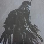 Shredder ist in Kontrast zum Steinhintergrund wiederum in Hochglanz gehalten. Hierbei ist auch eine interessante Abstufung des Glanzeffekts zu bewundern: während Shredders rechter Waffenarm bei jeder Neigung gut erkennbar bleibt, verwandelt sich der Rest von Shredders Rüstung in eine warm kolorierte, fast einfarbige Silhouette, die von einzelnen prägenden Zeichenlinien der Rüstung durchdrungen ist und von seiner Maske abgeschlossen wird.