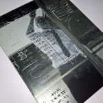 Unter der J-Card haben wir dann auf der Rückseite den Ben mit Arbeitswerkzeug Nummer 2 in der Hand. Hier wurden alle Effekte der Vorderseite nochmal und noch mehr aufgegriffen. Es scheint so, als wenn hier vier verschiedene Schichten/Ebenen vorhanden sind. Der Ben, die Schriften, der Fensterrahmen und der Hintergrund. Die Schrift in Gloss. Der Rahmen in Silber. Der Hintergrund in Metallicschimmernd und der Ben in/als Raster aufgedruckt.