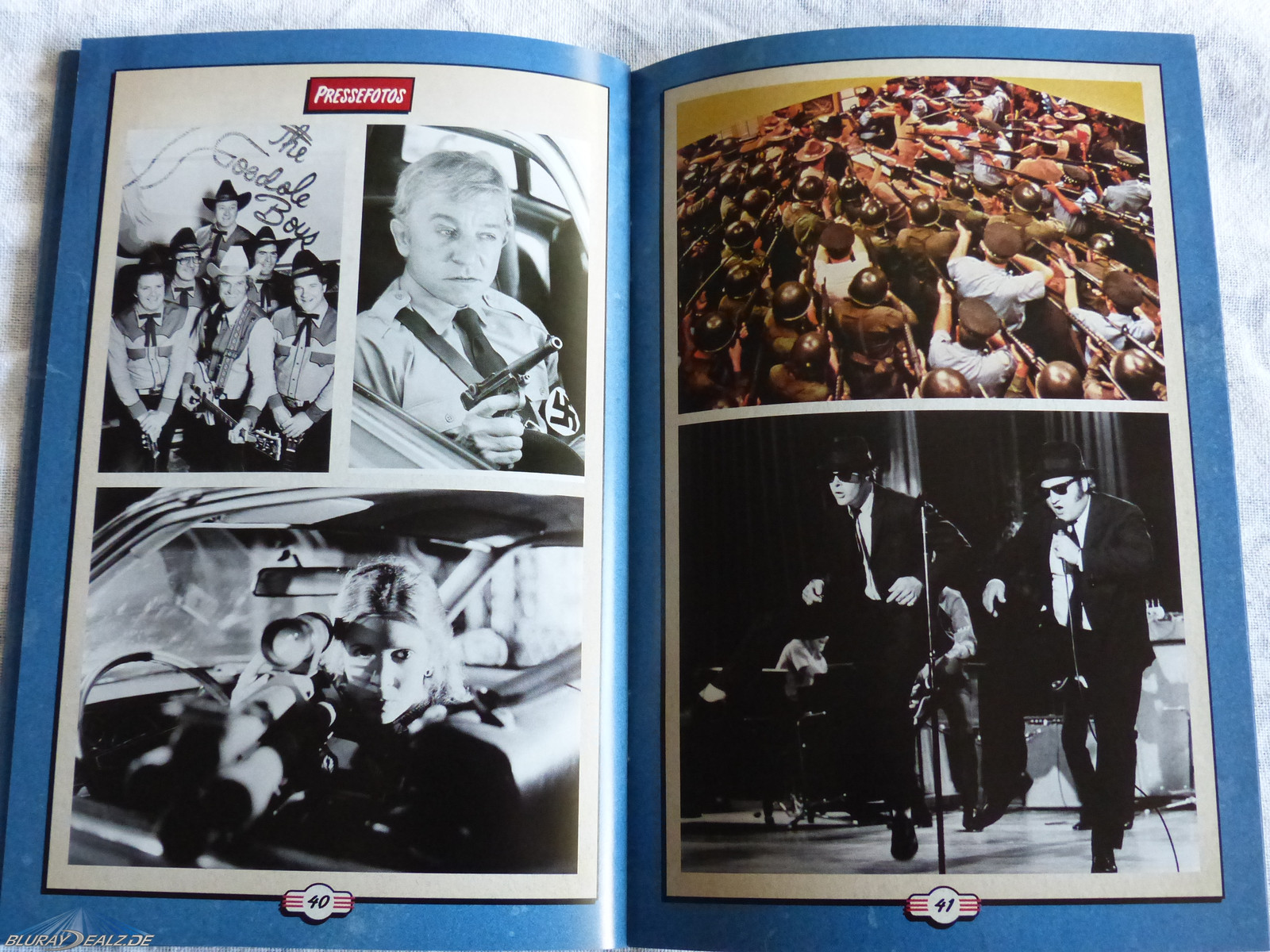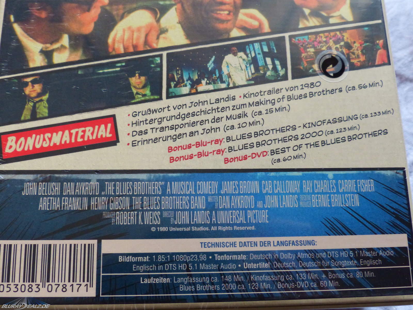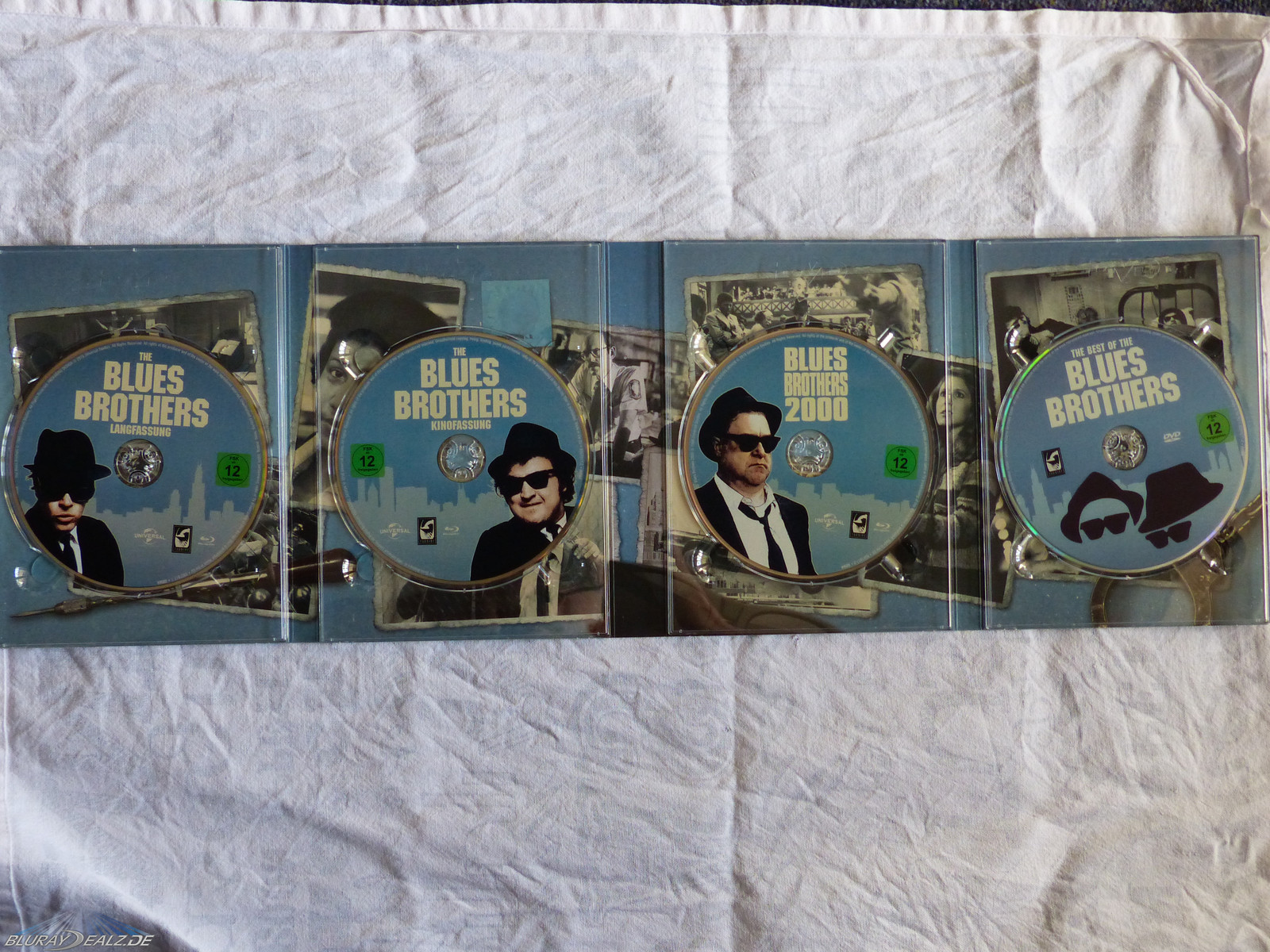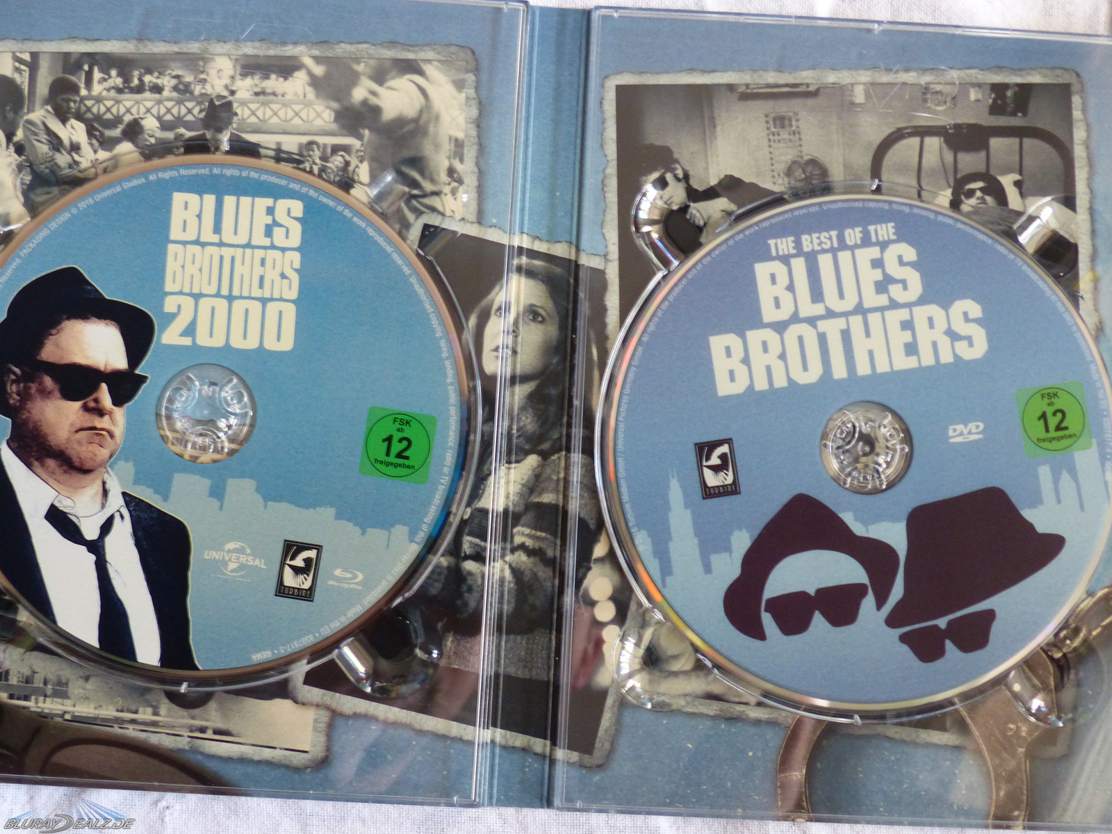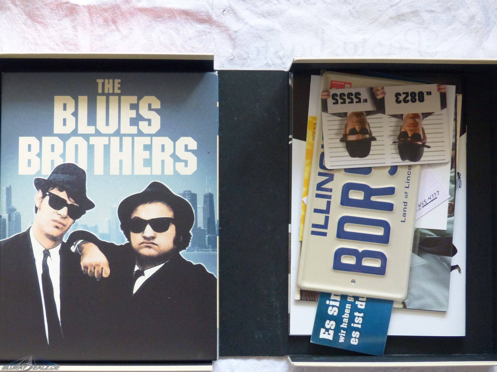 Die Extras bestehen aus zwei Aufklebern, einem doppelseitigem Filmplakat, einer Replik des Führerscheines von Elwood, ein kleines Blechkennzeichen des Bluesmobils, 7 Postkarten, eine Limitierungskarte und ein 48 Seitiges Booklet mit Informationen rund um die Filme. Alles in allem sehr sinnig ausgesucht und toll sehr hochwertig gestaltet.