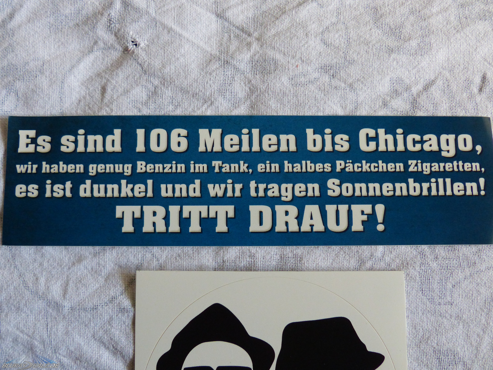 -Zwei Aufkleber (106 Meilen bis Chicago, Im Auftrag des Herrn)