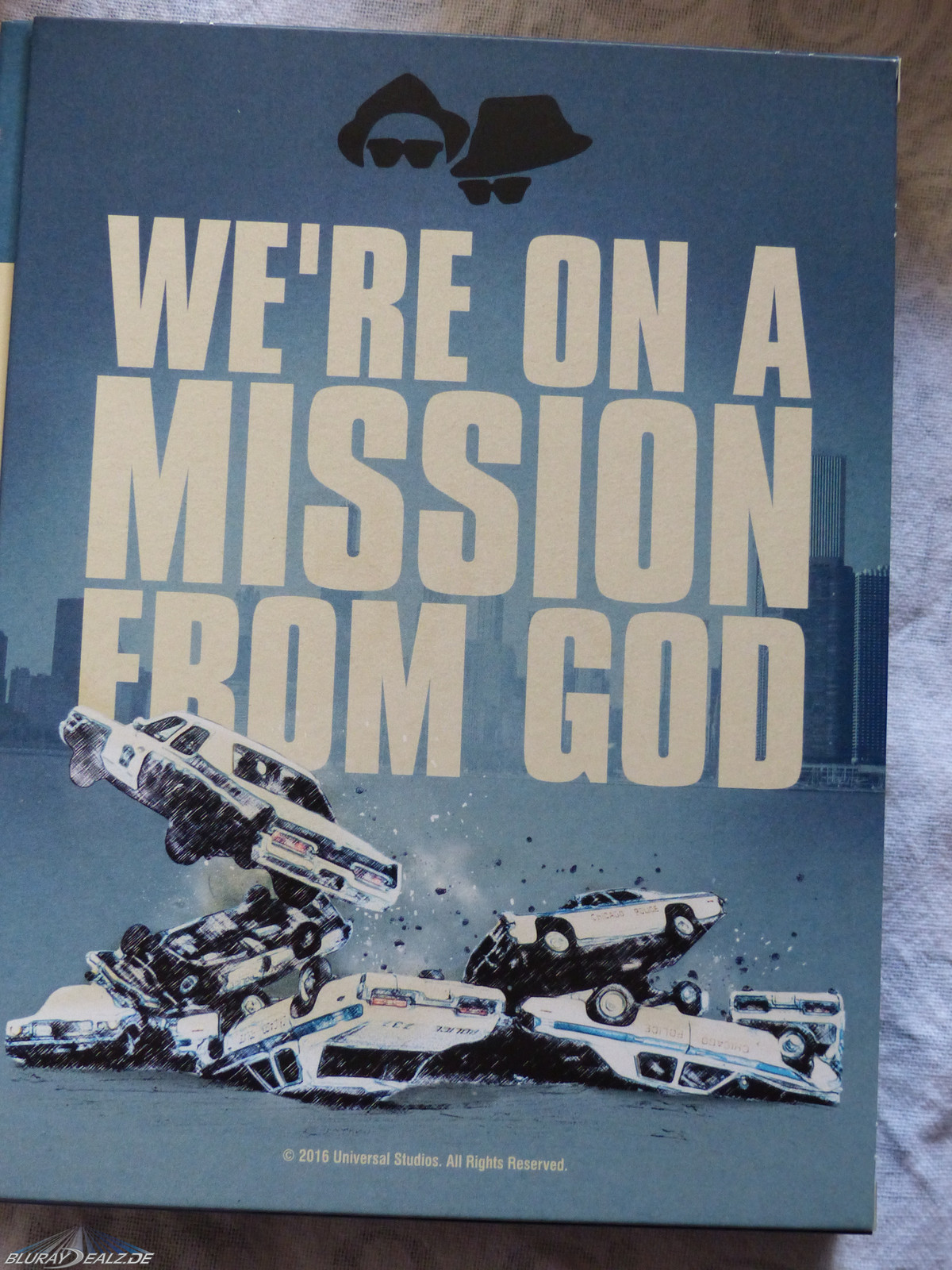 Das Digipak ist in einem matten Schuber gebettet. Der Schuber zeigt vorne die beiden Brüder Jake und Elwood, an der Seite den Titel und Hinten den Text „We’re on a Missionfrom God“. Keine weiteren Highlights, ist aber auch nicht nötig. Der wahre Schatz ist im Schuber.