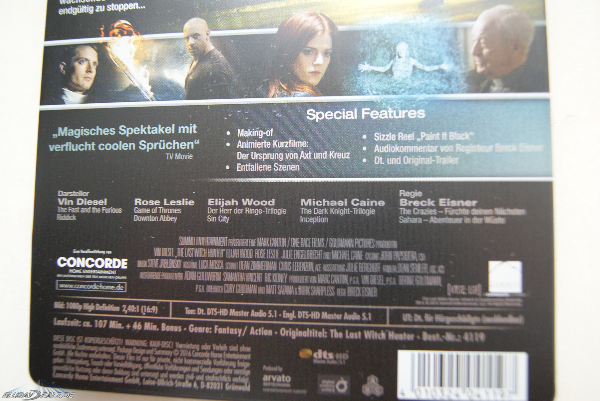 „The Last Witch Hunter“ ist eine US-amerikanisch-Produktion aus dem Jahr 2015. In den Hauptrollen sind Vin Diesel, Rose Leslie und Elijah Wood zu sehen, in einer Nebenrolle u.a. Michael Caine. Regie führte Breck Eisner. Seine Kinopremiere erlebte der Film in Deutschland am 22. Oktober 2015, knappe 5 Monate später, am 10. März 2016, gibt es nun die Heimkinopremiere.