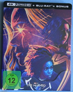 Vom Trailer an war klar, dass „The Marvels“ sich zu viel vorgenommen haben könnte. Und am Ende kann man sagen: genauso ist es dann auch gekommen. Einer der größten Kritikpunkte für viele war die fehlende Charakterzeichnung der drei titelgebenden Heldinnen. „Also, das ist mal Bullshit.“ Wer den Vorgänger-Streifen „Captain Marvel“ als auch die Disney+-Serien „Wandavision“ und „Mrs. Marvel“ gesehen hat, kennt alle drei zur Genüge und war auf die neue Fähigkeit der drei ausreichend vorbereitet. Aber was der Film trotzdem nicht schafft, ist, sich von der Marvel-Einheitsbreimasse der letzten Jahre abzuheben. Zu berechenbar, zu bekannt, zu zaghaft. Was bleibt, ist ein durchaus unterhaltender MCU-Film, der einige sehr coole Momente bietet (Goose war erst der Anfang) und keinesfalls ein schlechter Film ist. Aber mehr eben auch nicht. Konsequenzen fehlen diesem Film, ebenso wie eine Bösewichtin, die im Gedächtnis bleibt. Die Grundlagen für eine Story aufbauend auf den ersten Phasen des MCUs waren da, aber wurden entweder nicht genutzt oder achtlos weggeworfen. Und das ist schade, insbesondere gemessen an den sehr zentralen Post-Credit-Szenen für die Zukunft des gesamten MCUs (Stichworte: Young Avengers, X-Men). Daher nun die Frage: wie steht es um das Steelbook, welches Disney uns hierzulande spendiert? Hebt sich dieses letzten Endes vom Film selbst ab oder ereilt auch dieses dasselbe Schicksal der Mittelmäßigkeit? Das nachfolgende Review soll dazu nun Einblicke gewähren.