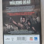 Die Rückseite birgt außer einigen Informationen und einer kleinen Collage von Bildern leider nicht viel. Wieder gibt es kein großes Backcover auf der Rückseite. Ein Innen-Artwork fehlt komplett. Das Jumbo-Steelbook enthält fünf Blu-rays, wobei die erste in einem Spine auf der linken Seite des Steelbooks untergebracht ist. Die anderen vier sind jeweils zu zweit in zwei eingehängten Spines, jeweils eines auf der Vorderseite und eins auf der Rückseite (siehe Bilder). Sehr schön passt das Steelbook natürlich in die komplette Serie der MM Walking Dead Steels.
