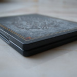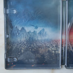 Alles was auf der Vorderseite richtig gemacht wurde, wurde auch auf der Rückseite gemacht. Rahmenprägung, Motivprägung (Symbol der Horde), verzierter Rahmen, Granitoptik – toll. Durch die ähnliche Art kann man das Steelbook ausgestellt problemlos von beiden Seiten präsentieren.