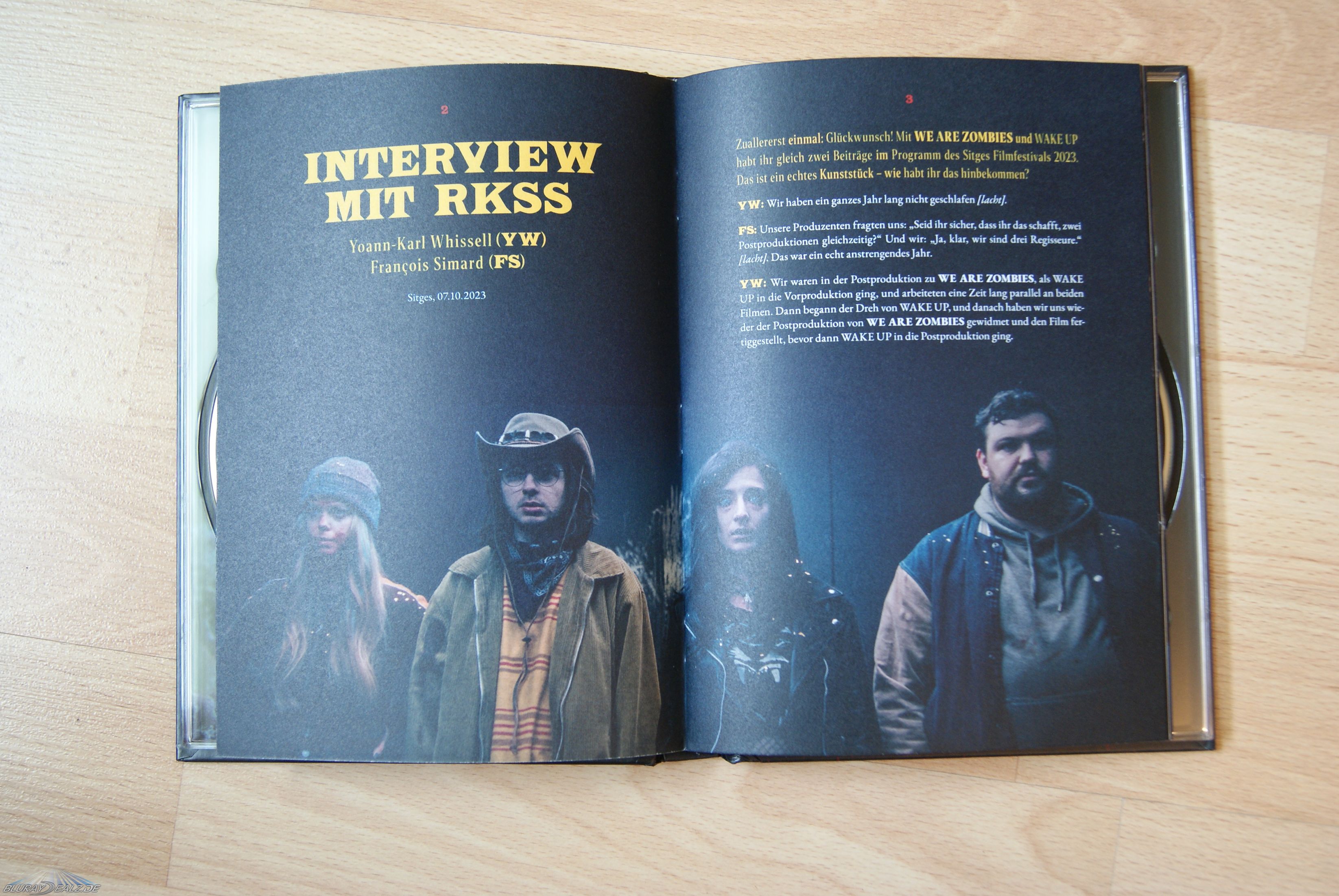 Eingepasste Discs auf sehr dunklen Hintergründen finden wir ähnlich wie beim „Nightwatch“-Mediabook auch hier. Doch das ist nicht die einzige Ähnlichkeit. Denn auch hier besteht der Text „nur“ aus einem Interview. Hier geführt von Dominic Saxl vom Deadline Magazin mit 2/3 von „RKSS“ beim Filmfestival in Sitges in 2023.