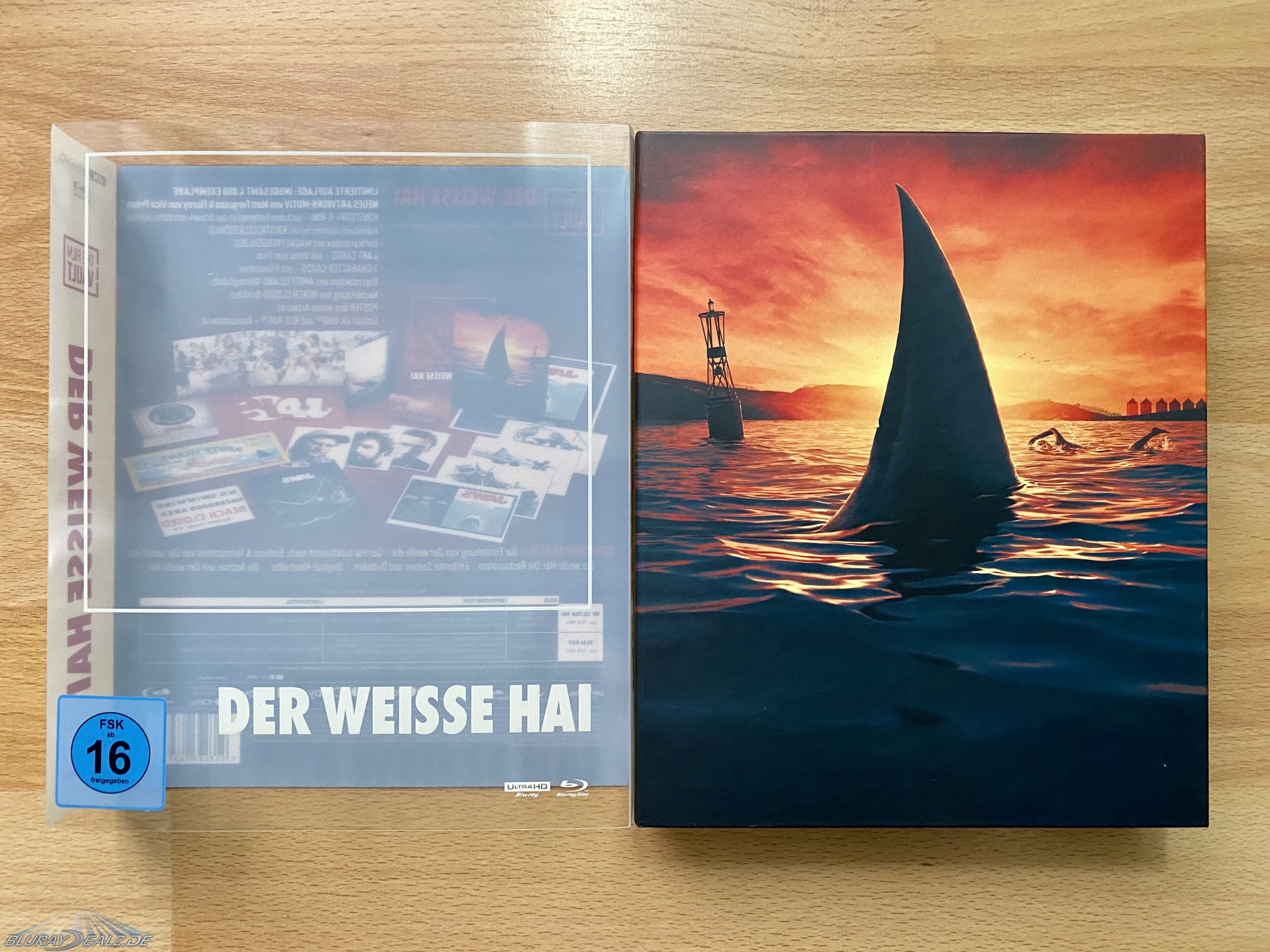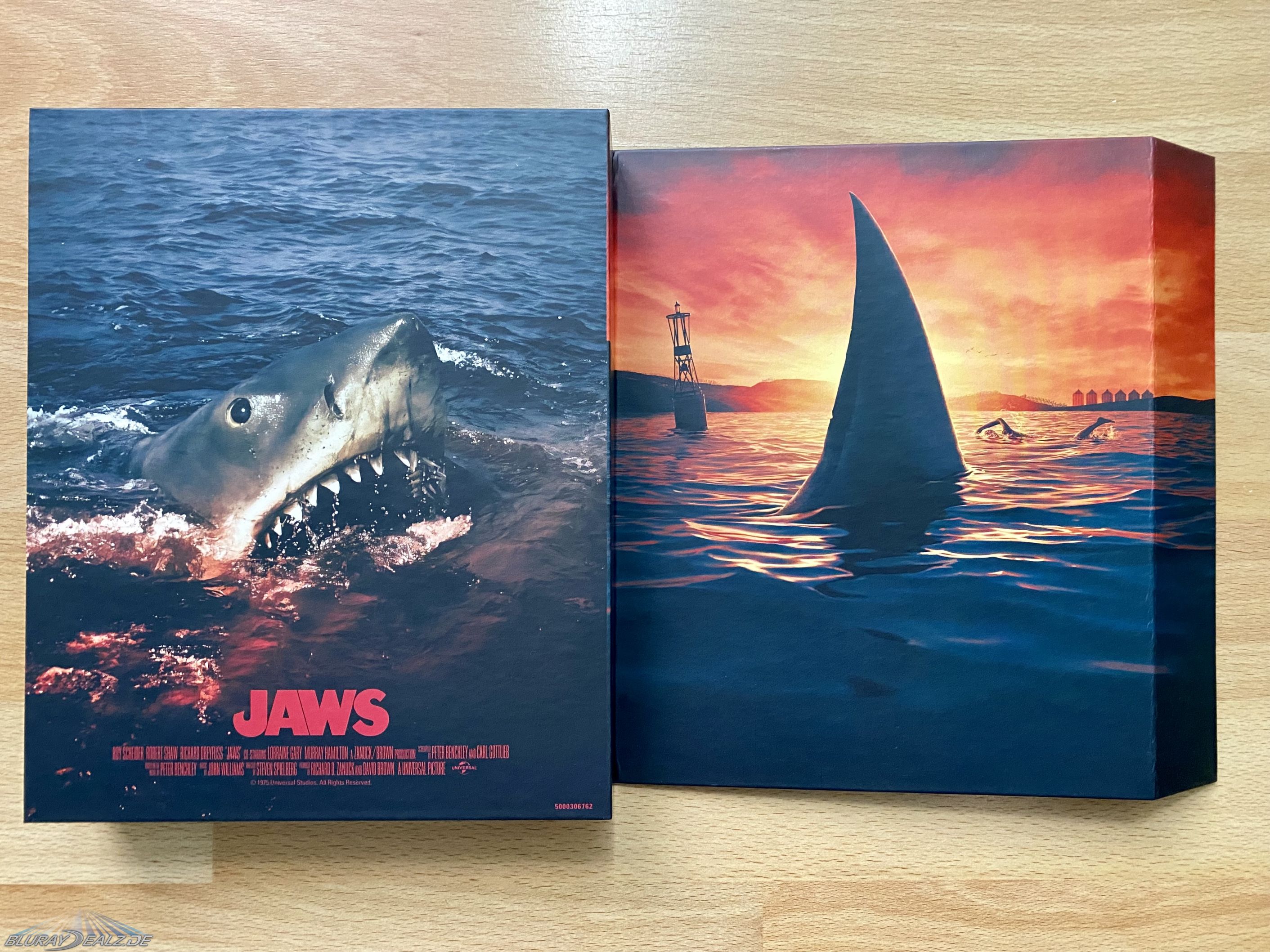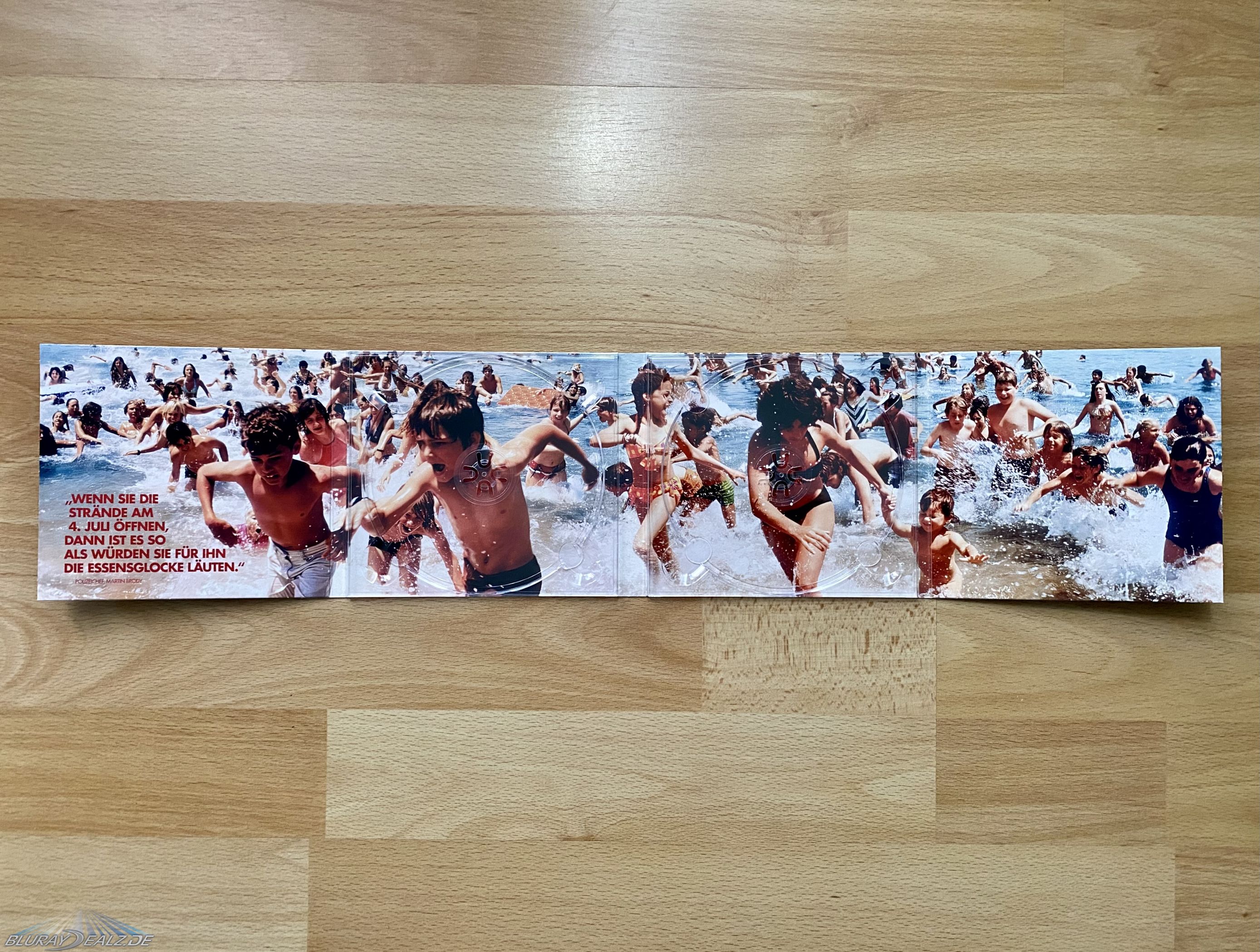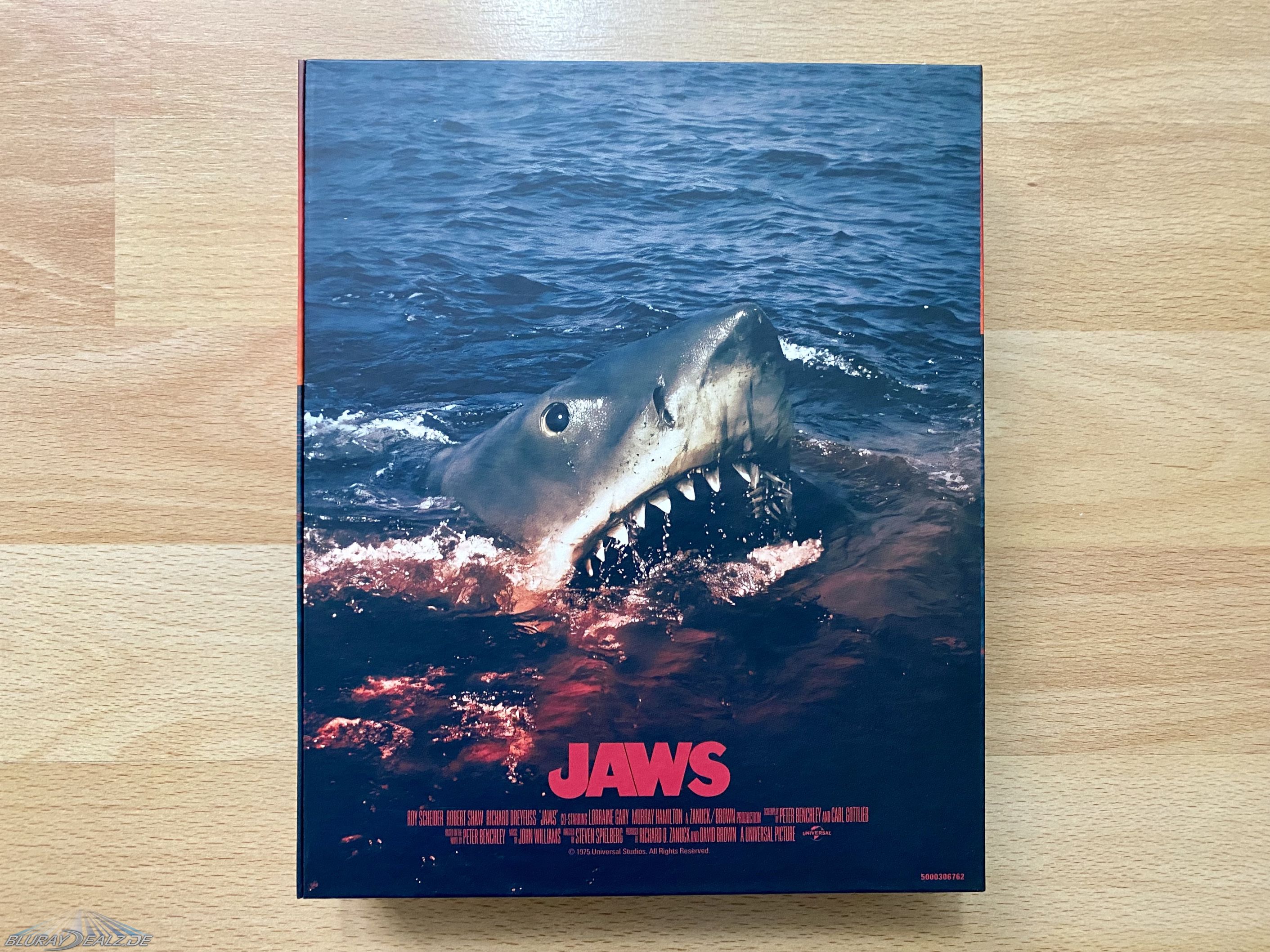 Die beiden Discs befinden sich in einem Slipcase wie man es quasi von CD-Veröffentlichungen kennt. Vorne ein offenes Hai-Maul (glänzend) und auf der Rückseite ein Rettungsring der ORCA (glänzend). Motive von Chris Rebello (Sohn von Chief Brody in der Rolle des Mike), Chrissie Watkins (das Mädchen, was dem Hai als erstes zum Opfer fiel gespielt von Susan Backlinie) und der Mannschaft der ORCA.