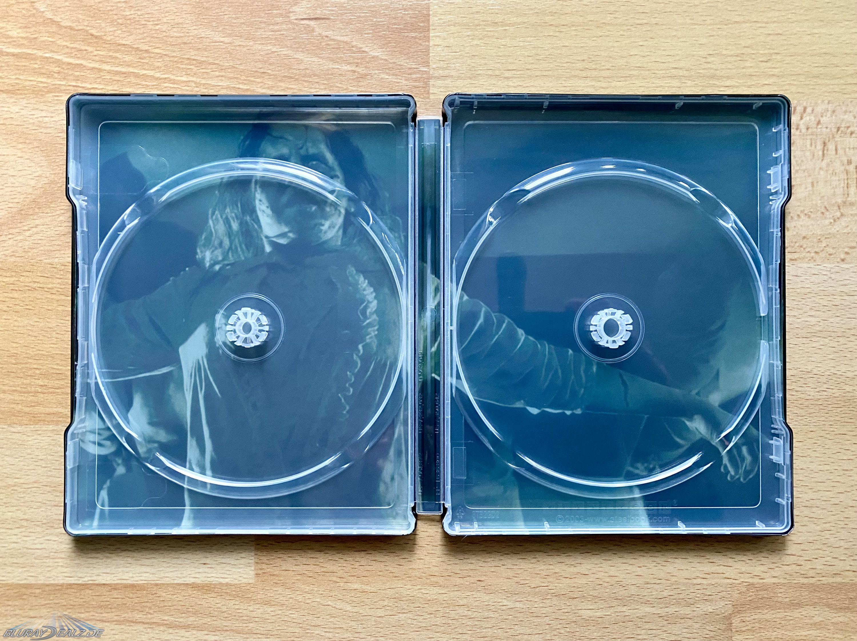 Jede Schnittfassung liegt auf je einer 4K UHD (100gb) und einer Blu-ray (50gb) vor, was das Set aus insgesamt 2x 4K UHD Discs, 2x Blu-ray Discs, sowie einer Bonus Blu-ray (25gb) bestehen lässt.