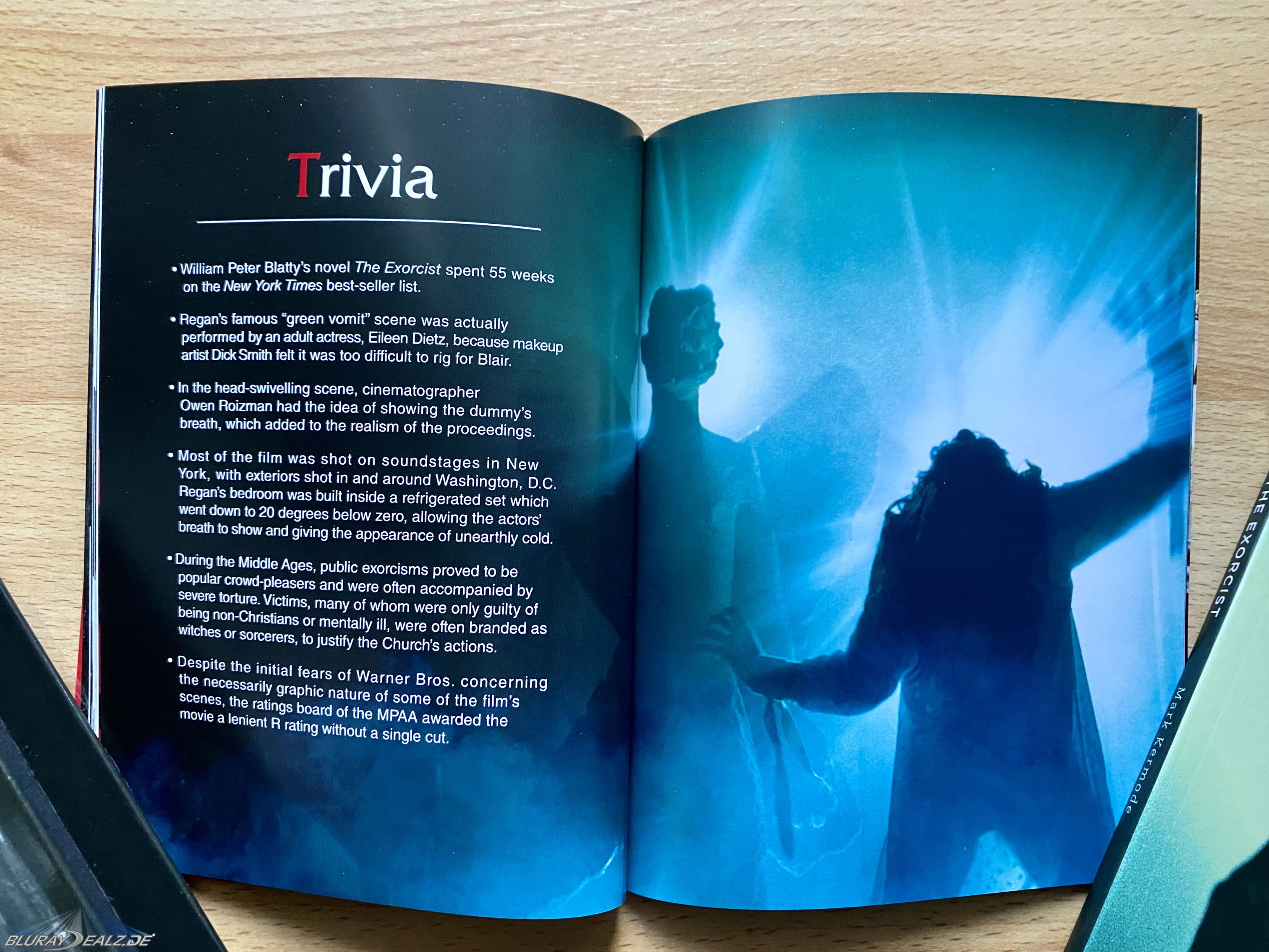 Das Booklet besteht aus insgesamt 40 Seiten und befindet sich samt der Goodies in einem gesonderten in Hochglanz bedrucktem Umschlag. Man wird mit allen nötigen Fakten zum Film, der Entstehung, Kontroverse und Vermächtnis versorgt. Abgerundet mit ausführlichen Biographien der Hauptdarsteller Ellen Burstyn, Linda Blair, Jason Miller, Max von Sydow und dem Screenwriter/Novelist William Peter Blatty so wie natürlich dem Regisseur William Friedkin, ein durchaus lesenswertes Büchlein.
