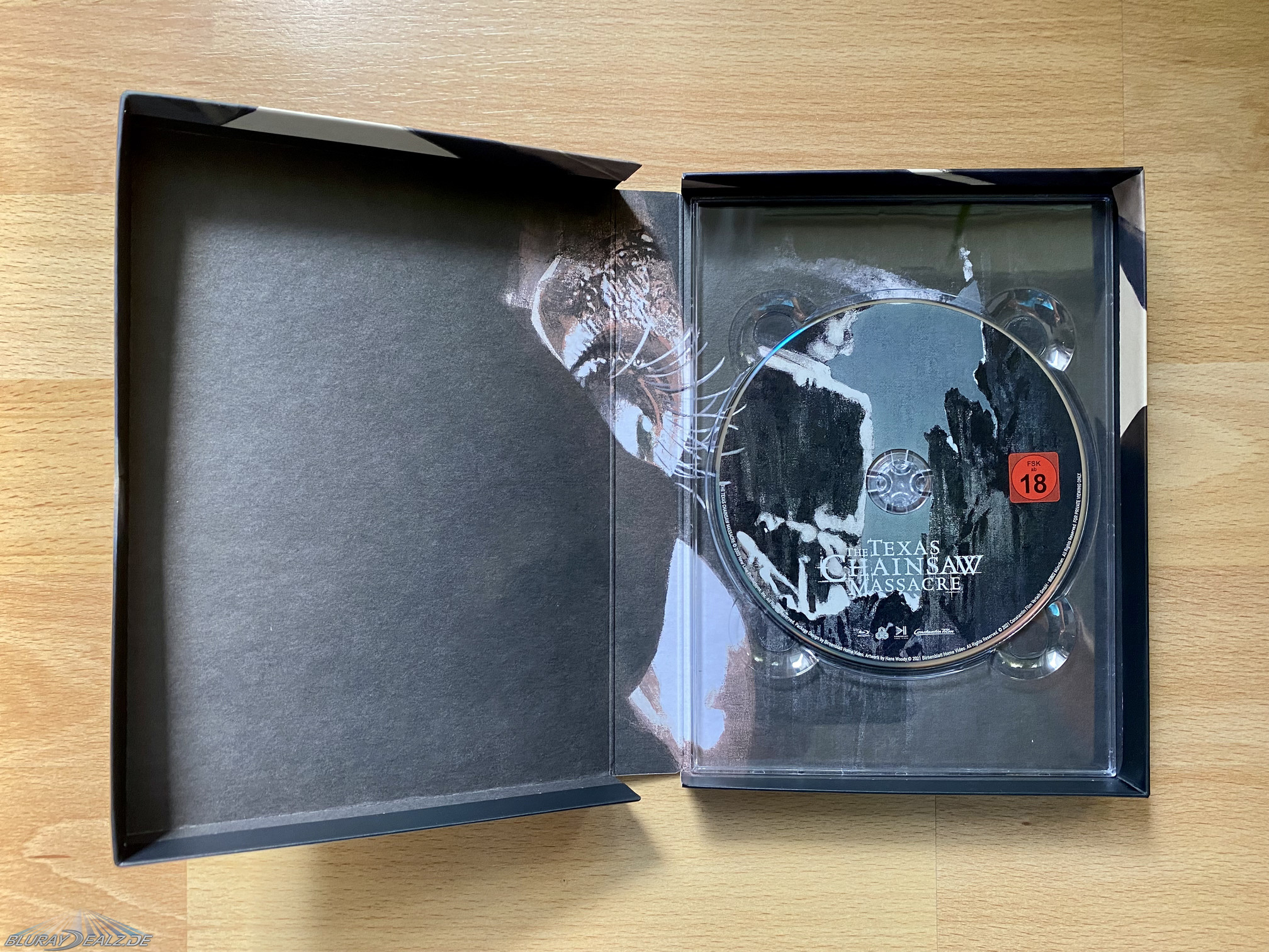 Der Schriftzug The Texas Chainsaw Massacre ist auf Front/Spine leicht geprägt und glänzend gehalten. Ansonsten ist die Box komplett matt bedruckt. Die J-card ist nur lose aufgelegt und auf ihr befindet sich auch die Limitierungsnummer (1.000 Stück).