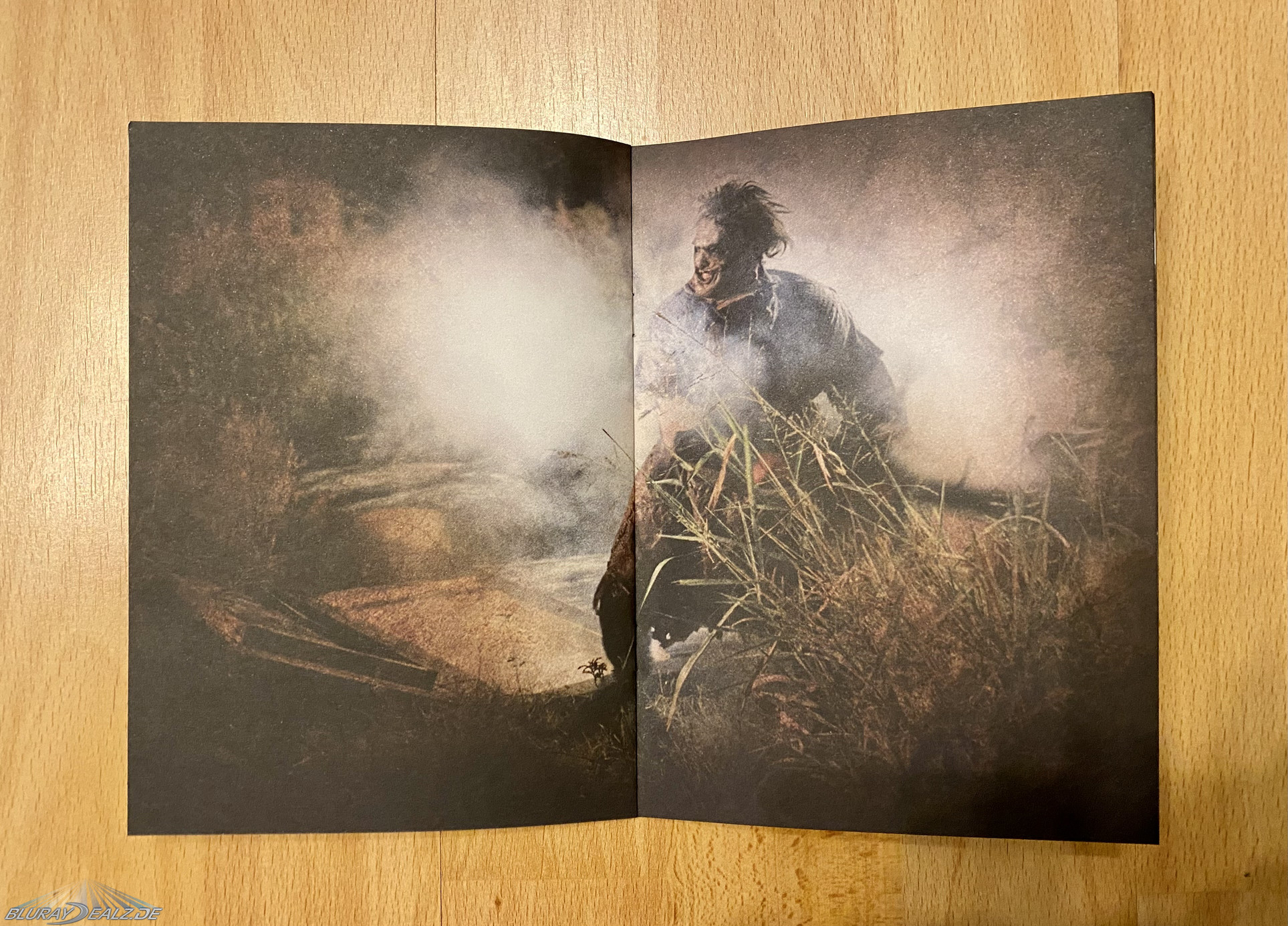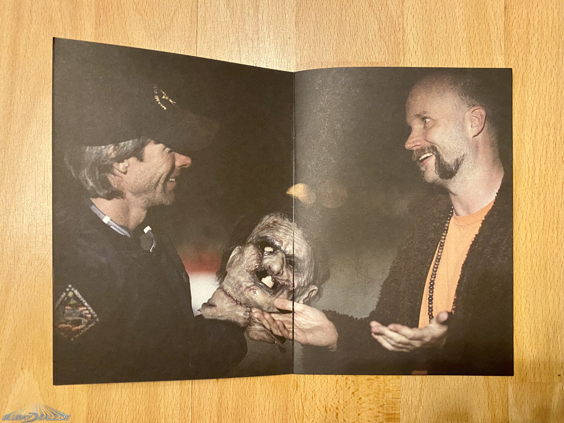Der Hintergrund/Innenteil der Box ist ein durchgehendes Motiv und gezeichnet wie das komplette Artwork der Box. Das Booklet wurde von Markus Haage geschrieben und enthält Infos zu der Entstehung und Inhalt vom Franchise. Für das Booklet wurde etwas dickeres/mattes Papier verwendet, wie man es von Arrow Video kennt.