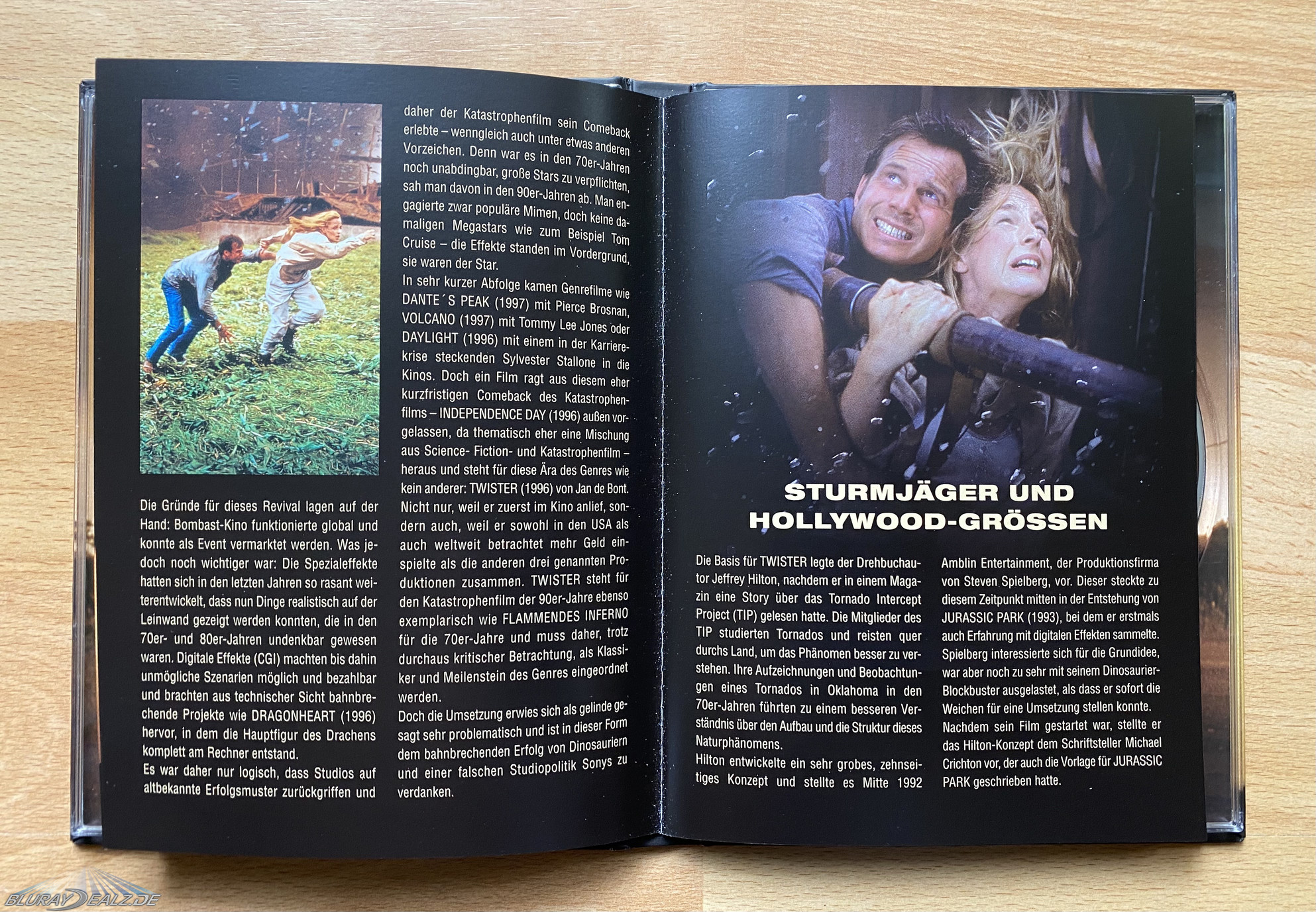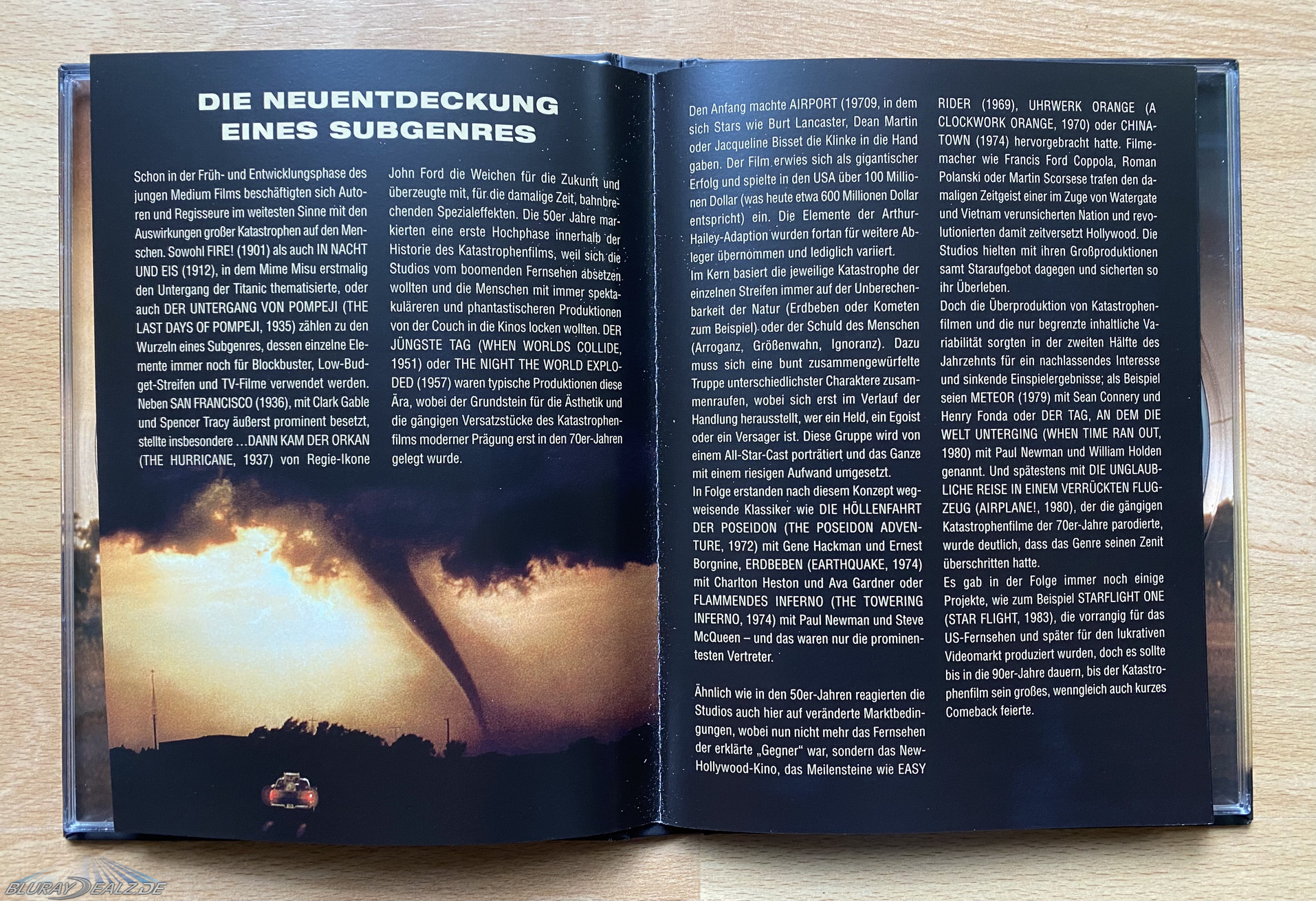 Das 24-seitige Booklet wurde von Tobias Hohmann verfasst und befasst sich im ersten Teil mit der Faszination für Katastrophenfilme (Flammendes Inferno, Dante´s Peak, Volcano, Daylight etc.).
