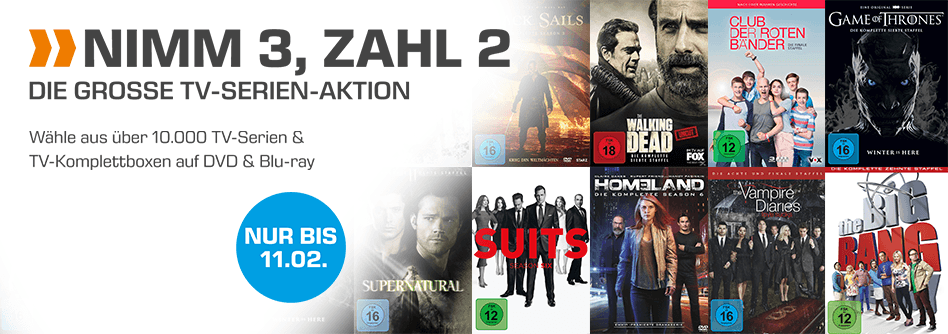 Amazon kontert Saturn.de: 3 für 2 TV Serien Aktion (bis 11.02.18)