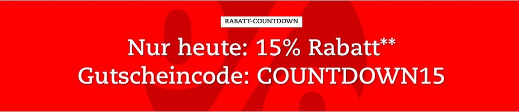 Heute gibt es 15% Rabatt mit dem Gutschein COUNTDOWN15