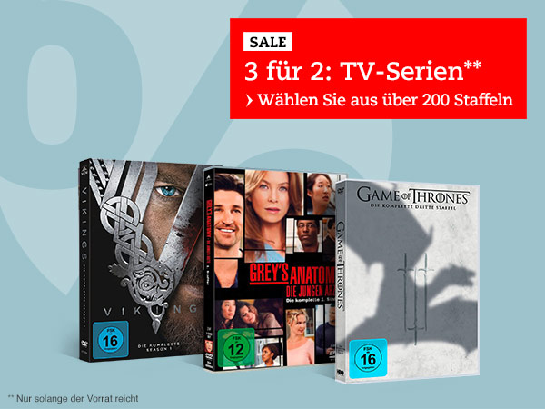 Thalia.de bietet aktuell ein 3 für 2 auf Serien an. Der Rabatt wird direkt im Warenkorb abgezogen. Leider nur für DVDs und Gutscheincodes gehen nicht zusätzlich. Aber vielleicht ist für den ein oder anderen trotzdem was dabei was dabei.
