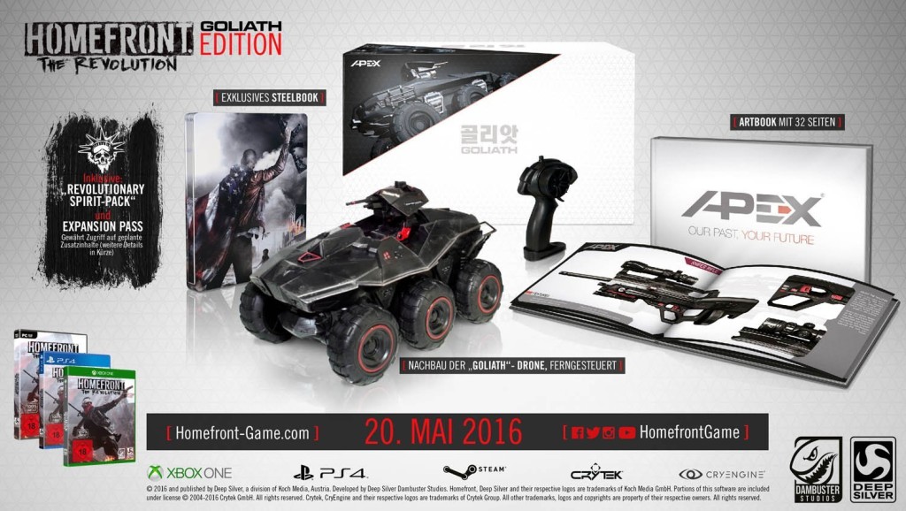 Gameware.at haut gerade die Goliath Edition von Homefront the Revolution für die beiden Konsolen Xbox One und PS4 je für nur 79 € statt 159€ raus. Preis versteht sich inklusive Versandkosten.