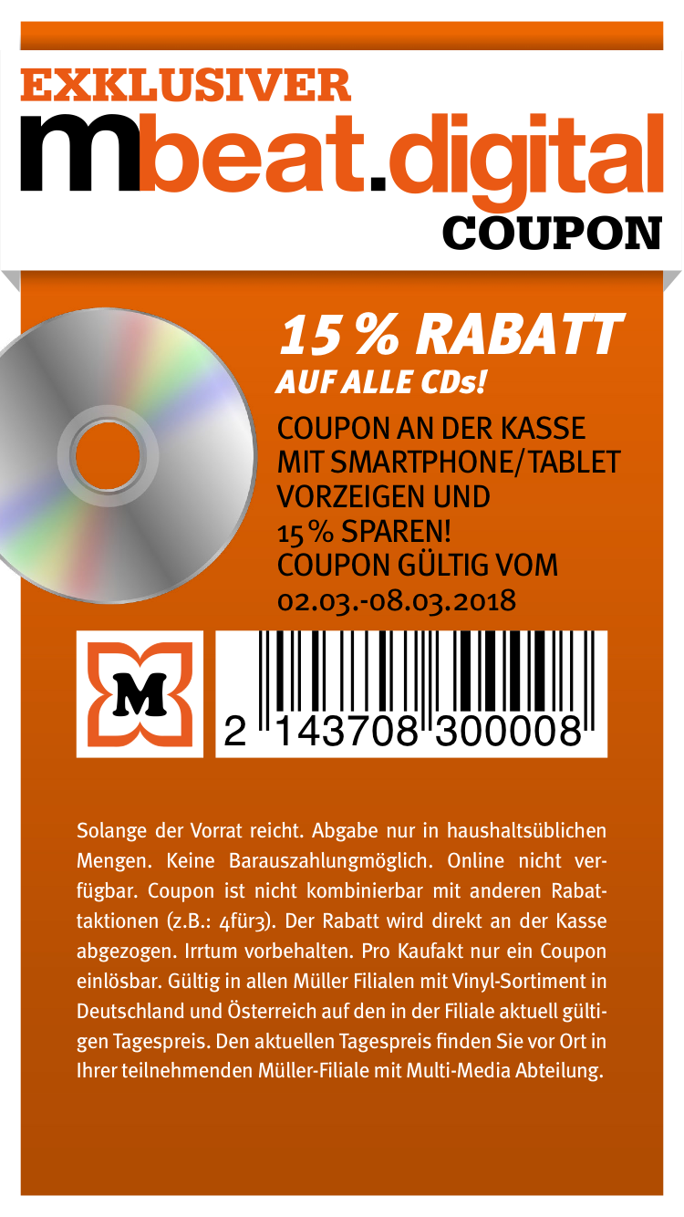 Mueller.de bietet vom 02.03.18 – 08.03.18 15% Rabatt auf alle CD’s. Das gilt sowohl für Onlinebestellungen, die bis zum 08.03.18 in der Filiale abgeholt werden, wie auch für Käufe im Laden selbst. Ihr müsst led […]