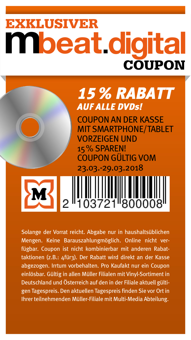 Mueller.de hat momentan einen 15% Gutschein auf alle DVDs veröffentlicht. Der Gutschein gilt vom 23.03.18-29.03.18.